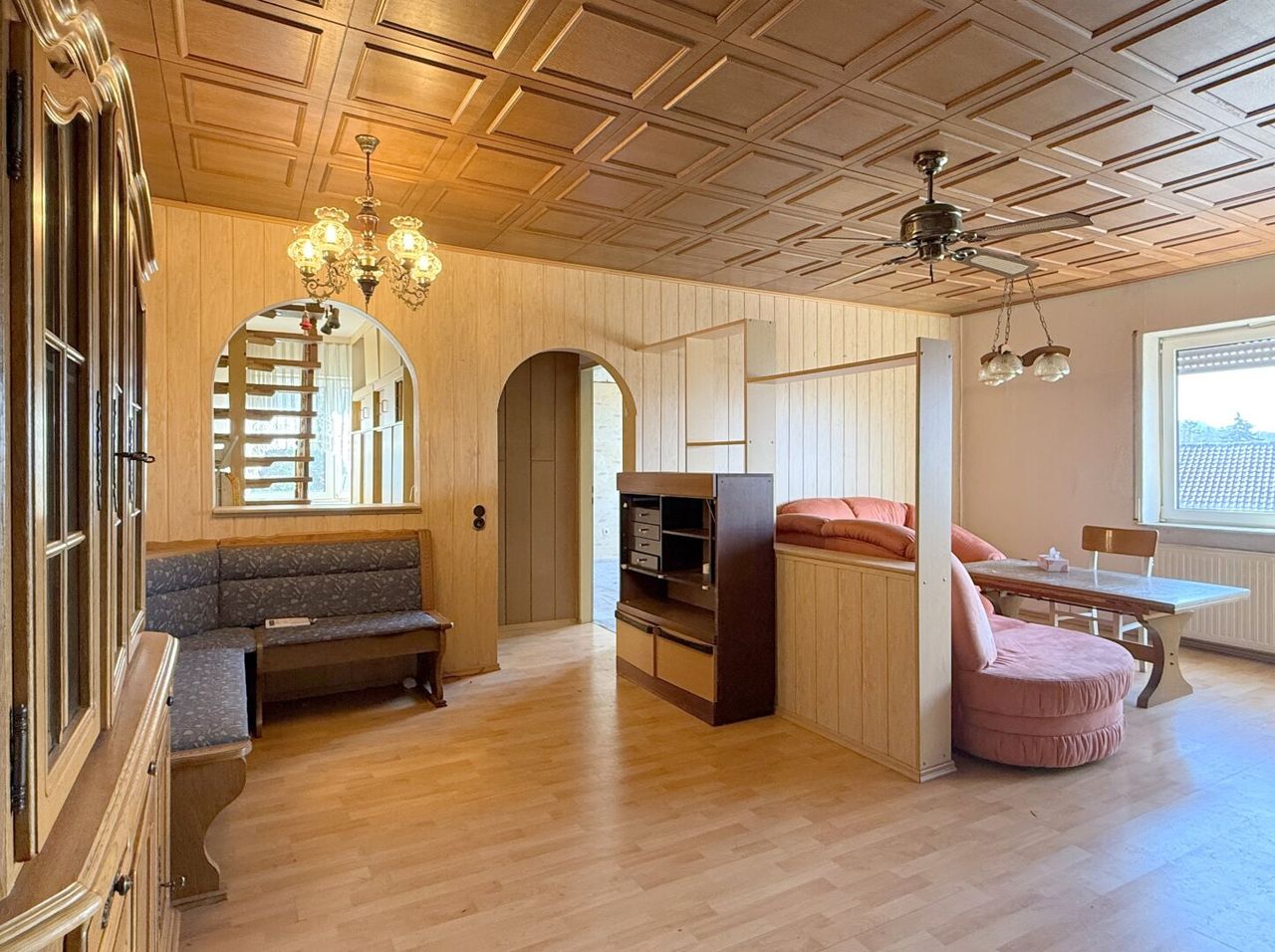 Die Wohnräume überzeugen durch ihre angenehme Größe und große Fensterflächen, die viel Tageslicht ins Haus lassen. Beide Küchen sind funktional ausgestattet und vollständig eingerichtet, entsprechen jedoch dem Baujahr und bieten Raum für eine moderne Neugestaltung nach eigenen Vorstellungen.
