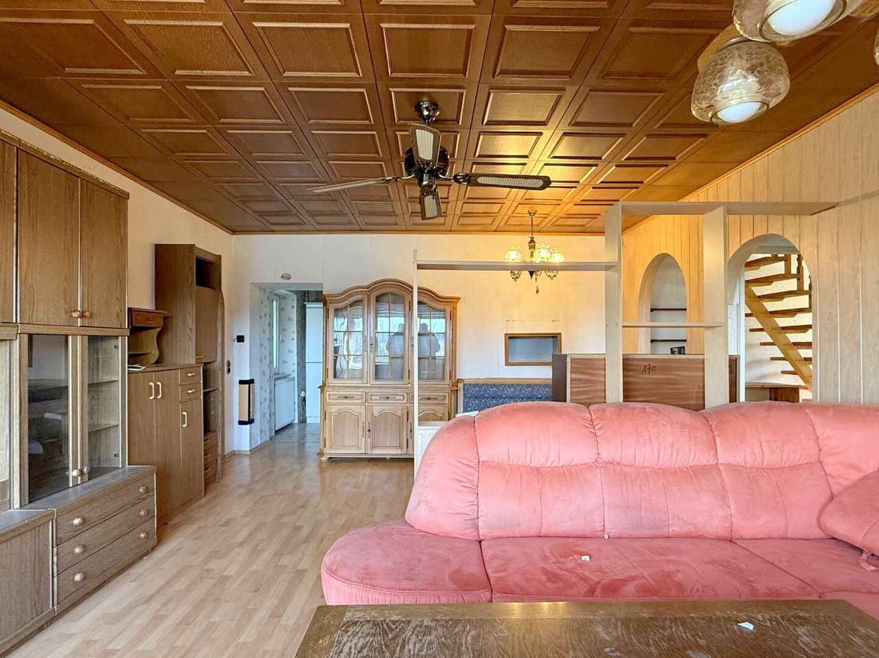 Das gesamte Haus befindet sich in einem renovierungsbedürftigen, aber strukturell soliden Zustand. Es handelt sich nicht um einen Sanierungsfall, sondern um ein klassisches Modernisierungsprojekt mit viel Substanz.