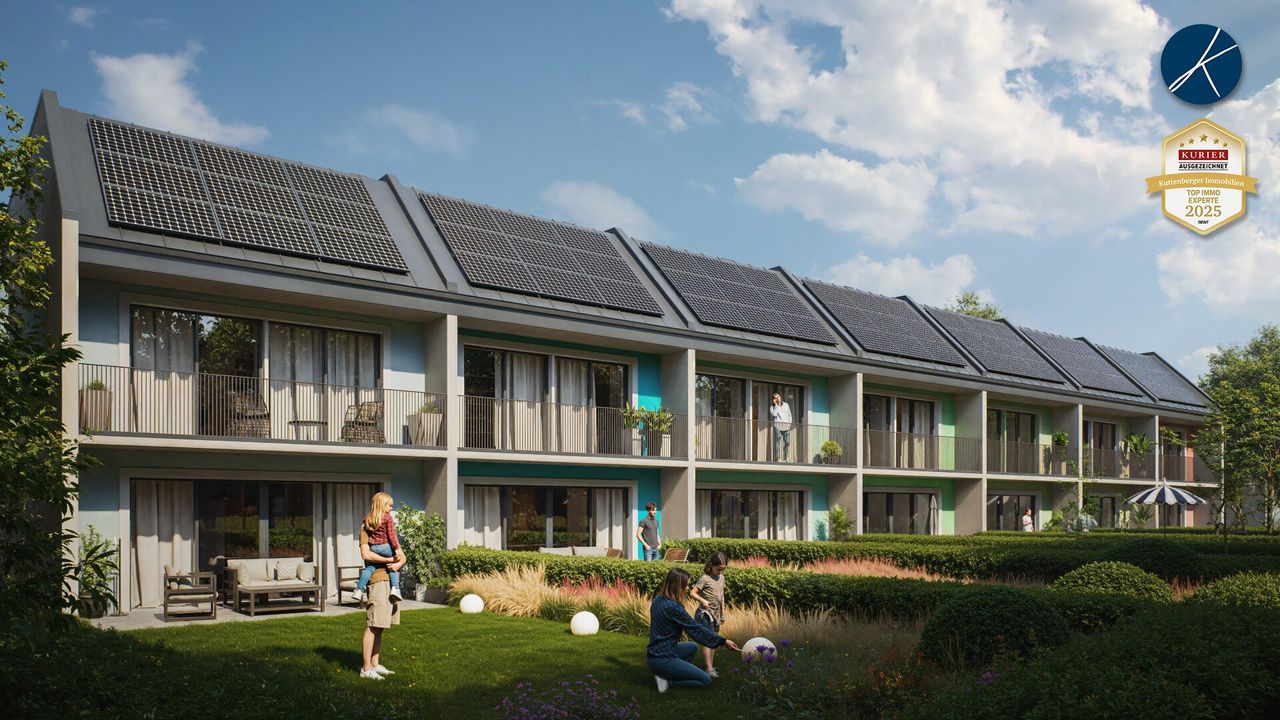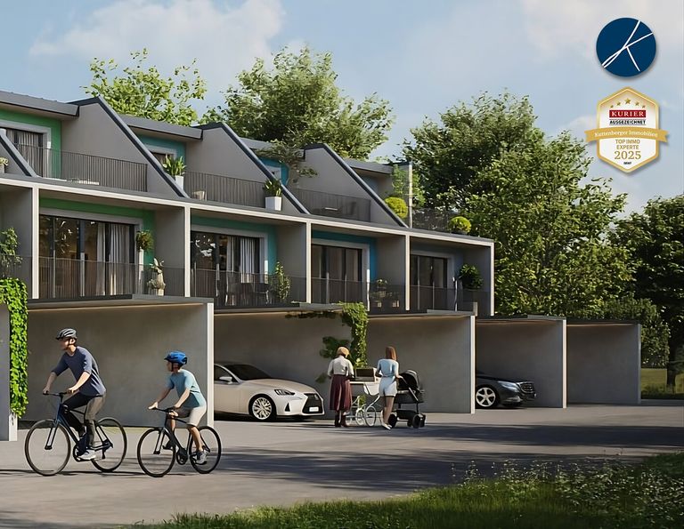 Auf einem ebenen Grundstück in ruhiger Lage von Dürnrohr entstehen geräumige Reihenhäuser im Erstbezug. Die Fertigstellung ist für das 1. Quartal 2028 vorgesehen. Die Einheiten haben jeweils rund 127m² Wohnfläche zuzüglich 2 Terrassen (ca. 34m²) und 2 Loggien (ca. 12m²) sowie einen Gartenanteil (je nach Haus zwischen ca. 43 und ca. 165m²). Die Planung ist so angelegt, dass jedes Zimmer über eine Außenfläche (Terrasse oder Loggia) verfügt.