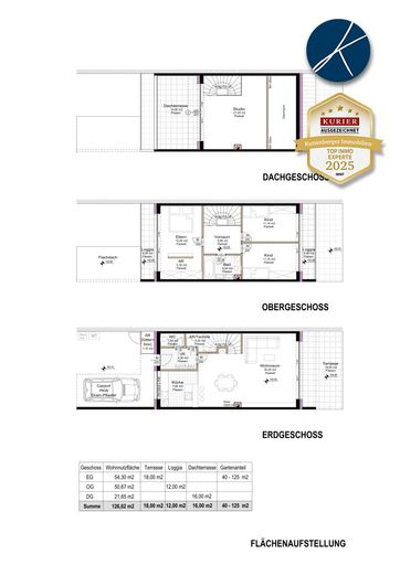 Raumaufteilung: EG: Vorraum, Gäste-WC, Abstell-/Technikraum, Wohnraum mit offener Küche und Ausgang zur Terrasse und zum Garten OG: Vorraum, 3...