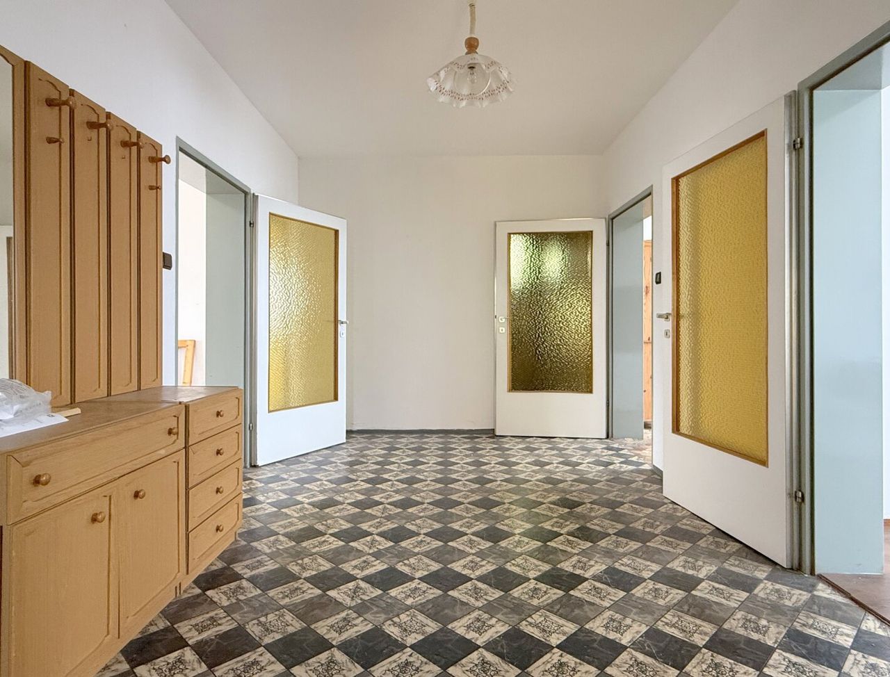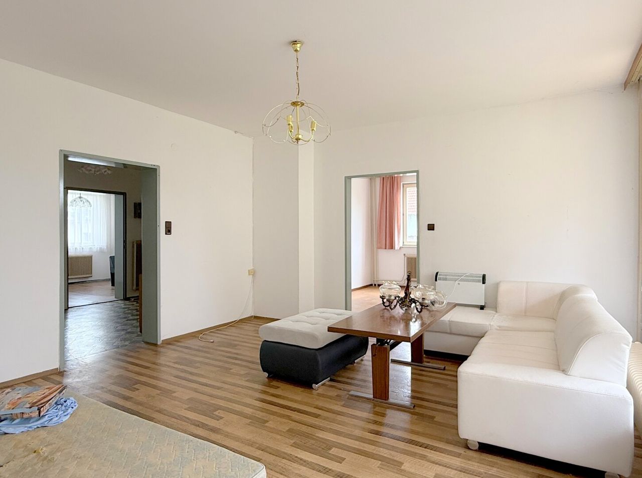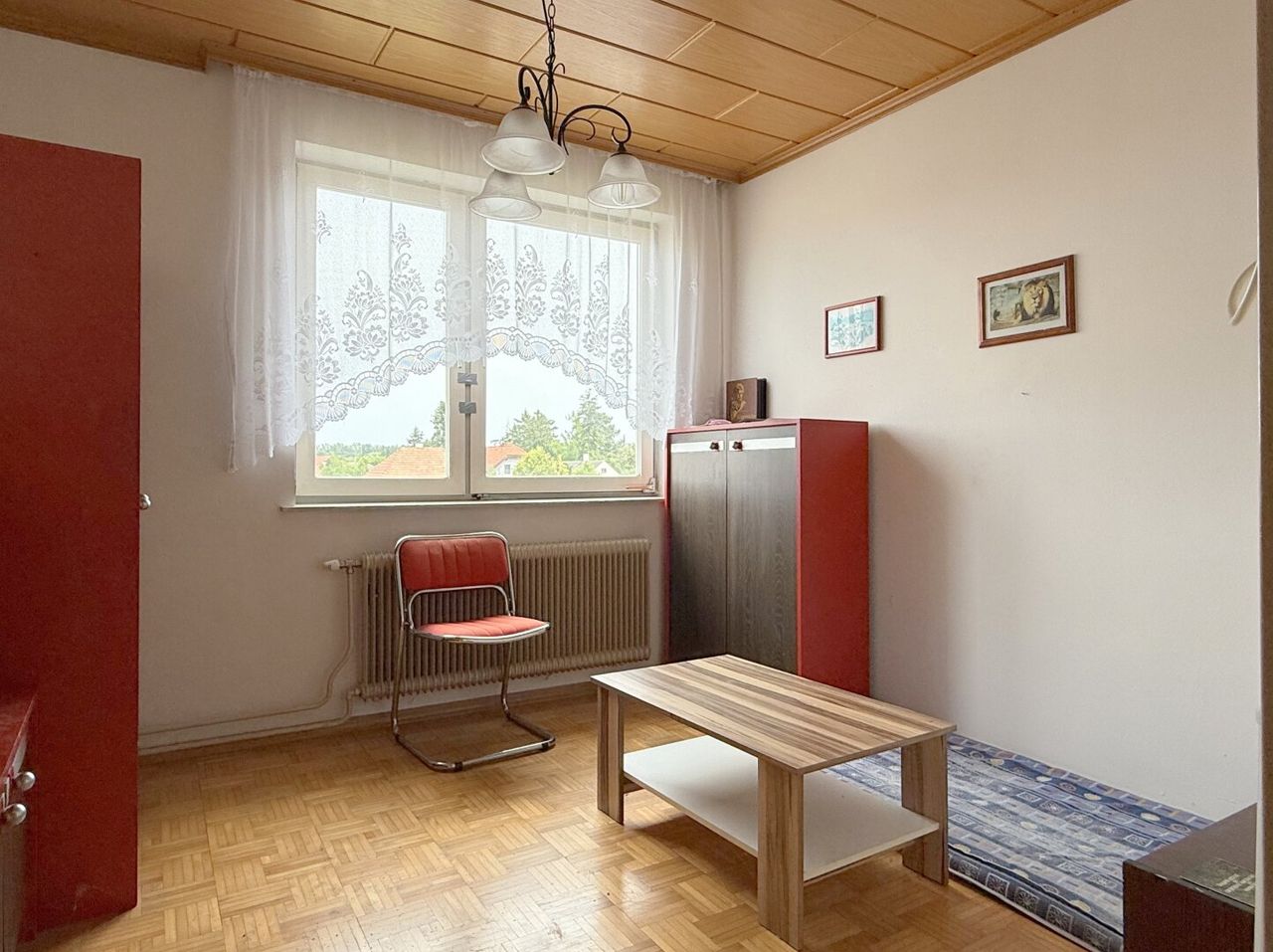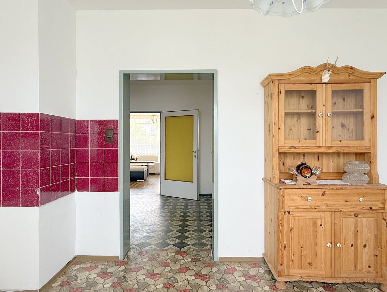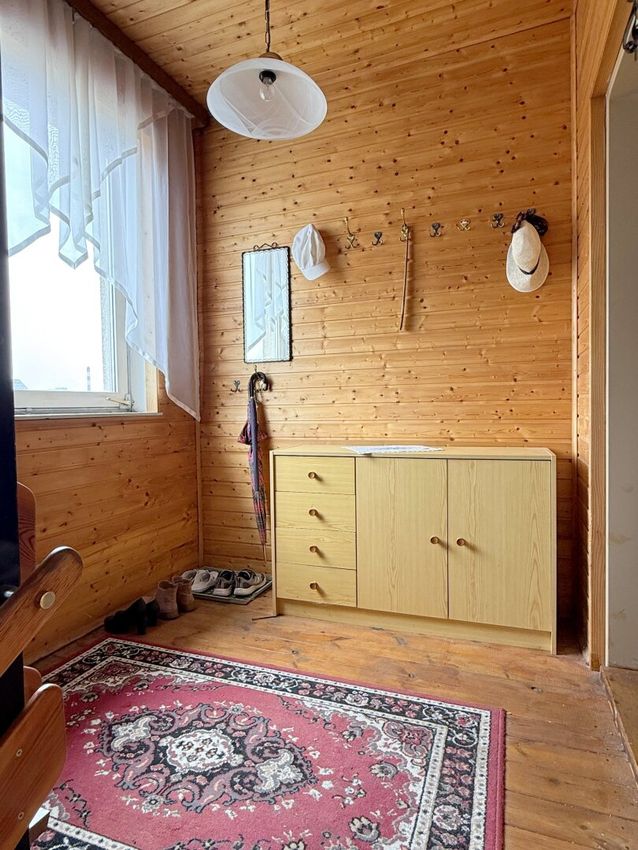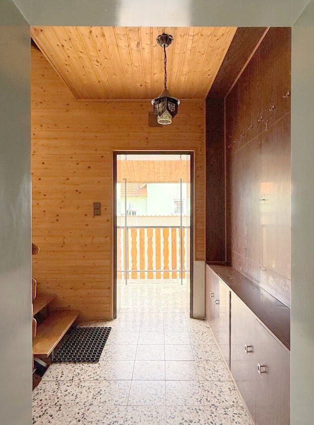 Das gesamte Haus braucht etwas Zuwendung, um seinen Charme wieder voll zu entfalten – Farbe allein wird hier nicht ausreichen. Das Erdgeschoss zeigt altersbedingte Gebrauchsspuren, während sich das Obergeschoss in einem insgesamt besseren Zustand präsentiert. Beide Wohneinheiten verfügen aber über einen Balkon, der ausreichend Platz bietet.