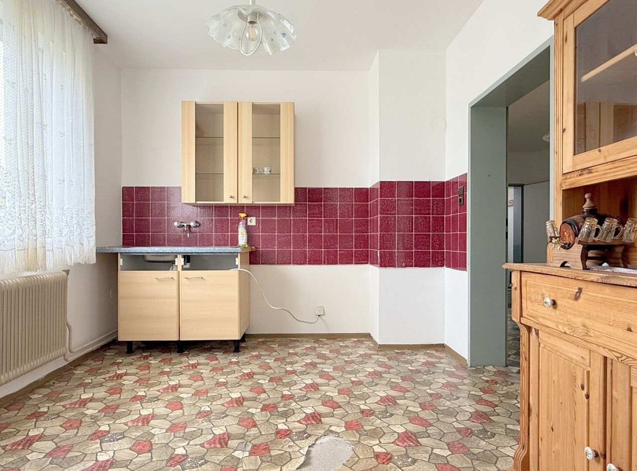 Das gesamte Haus braucht etwas Zuwendung, um seinen Charme wieder voll zu entfalten – Farbe allein wird hier nicht ausreichen. Das Erdgeschoss zeigt altersbedingte Gebrauchsspuren, während sich das Obergeschoss...