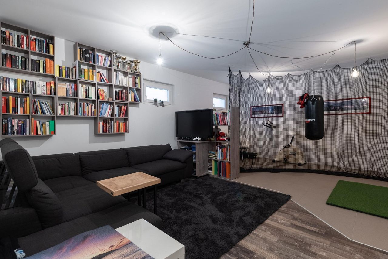 Der vollunterkellerte Bereich mit rund 70 m² bietet viel Platz für Hobby, Werkstatt, Fitness oder Wellness. Wasch- und Trockenraum sowie ein Starkstromanschluss (z.B. für eine Sauna) sind ebenfalls vorhanden und eröffnen zahlreiche Nutzungsmöglichkeiten.