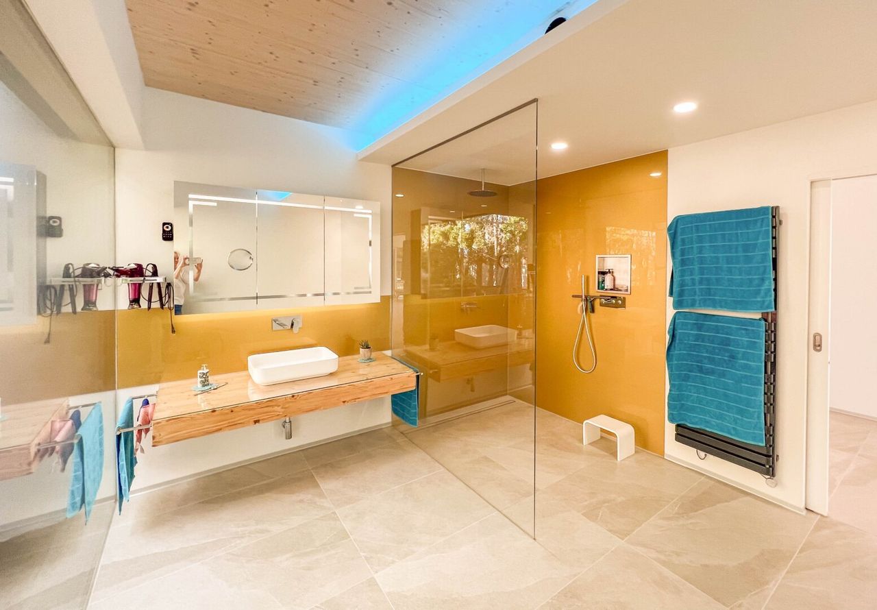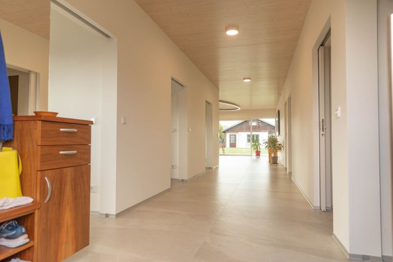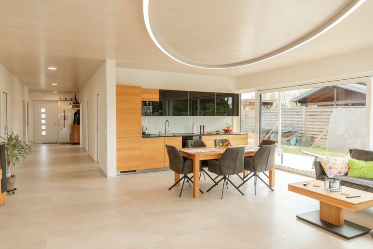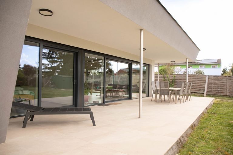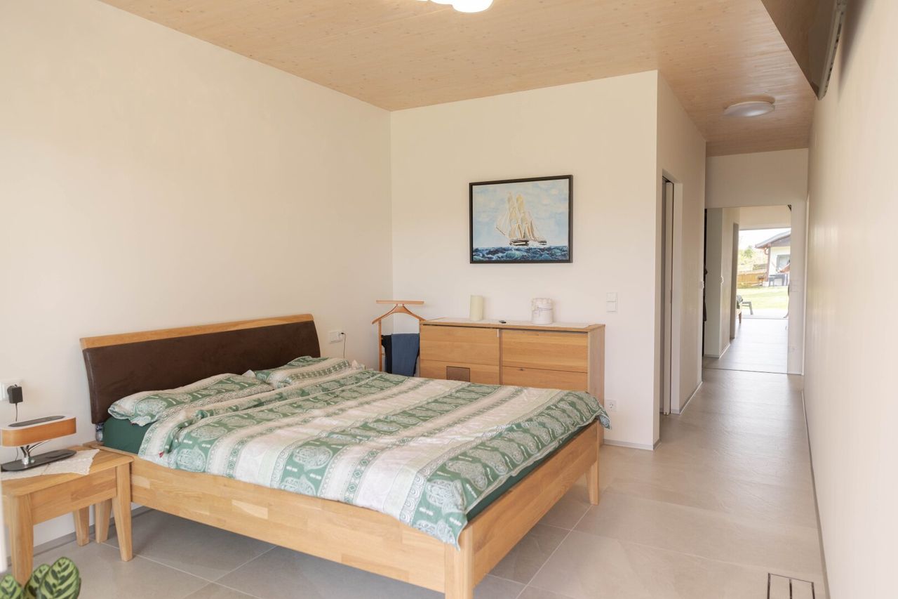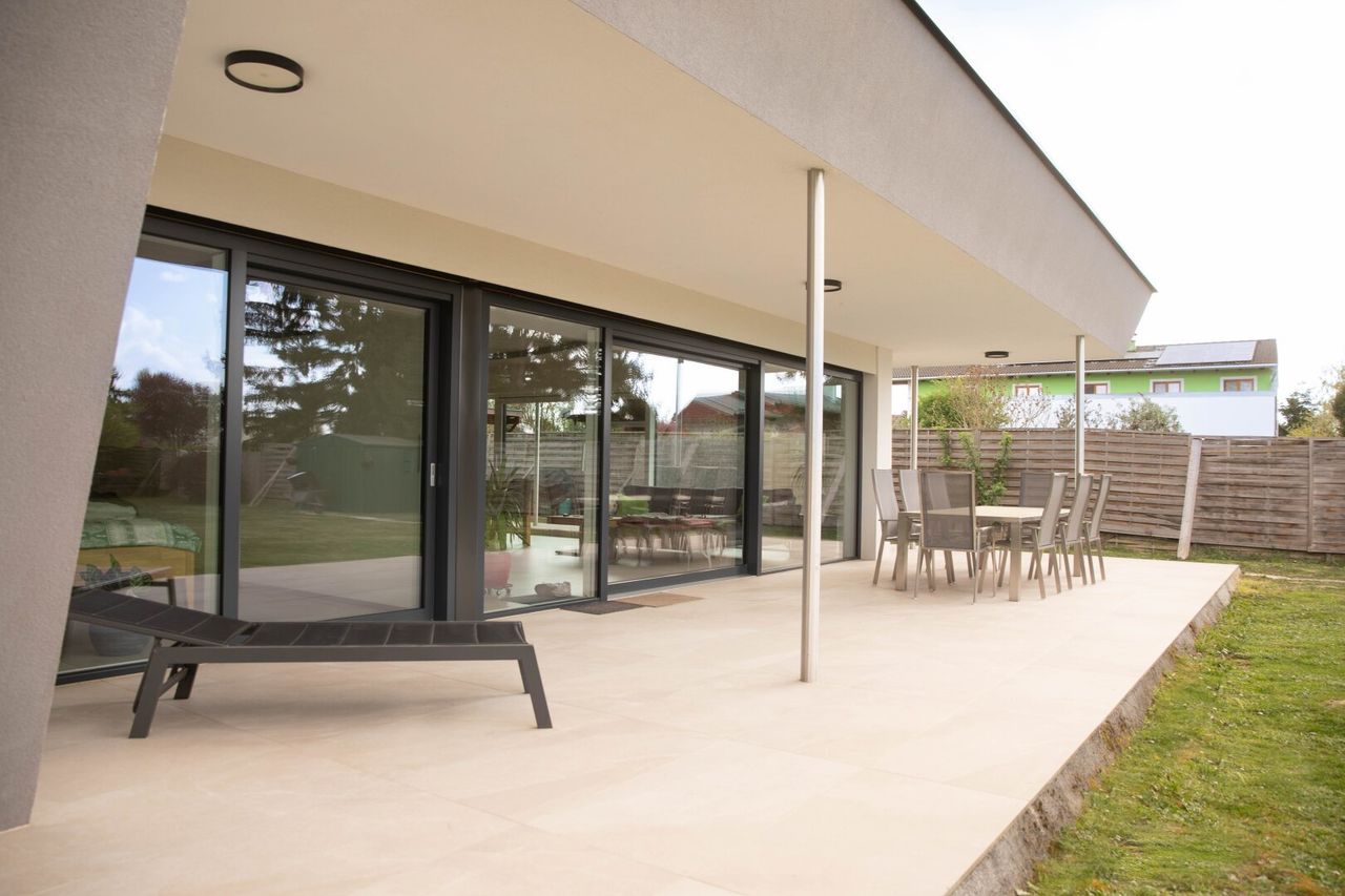✨ Die Highlights auf einen Blick: 📐 148 m² Wohnfläche 🛏️ 5 zentral begehbare Zimmer 🌳 1131 m² Grundstück ☀️ 88 m² Terrasse 🧱 Holzriegelbauweise mit Massivholzdecke ♿ Barrierefrei
