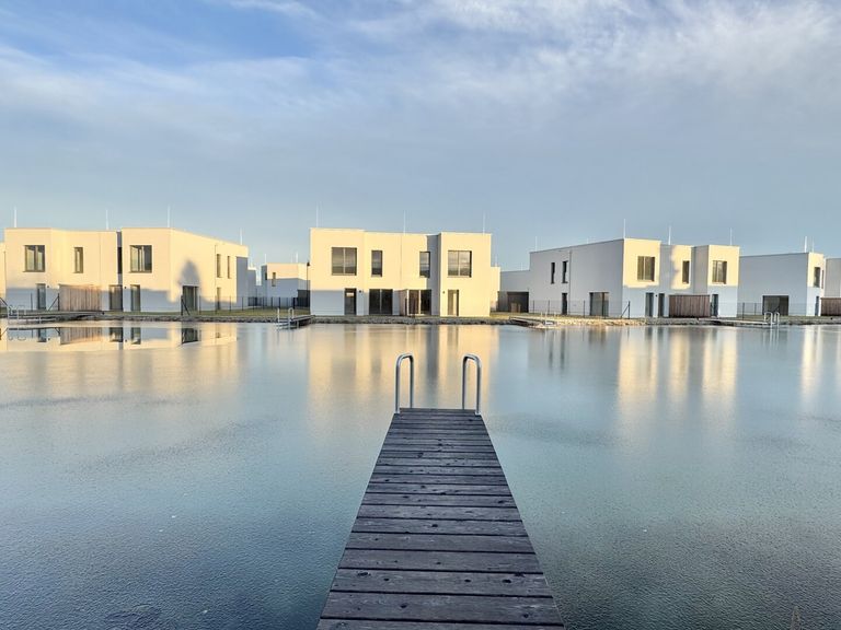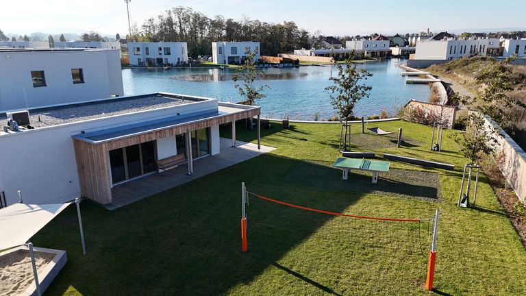 Neben den Einfamilien-, Doppel- und Reihenhäusern auf parzellierten Grundstücken bietet der SONNENWEIHER mit der Anlage CostaWINUM auch kleinere Seehäuser mit je ca. 68m² Wohnfläche sowie einem Clubhaus, vier Spielplätze und ein Restaurant am Campus Lakeside der SeneCura.