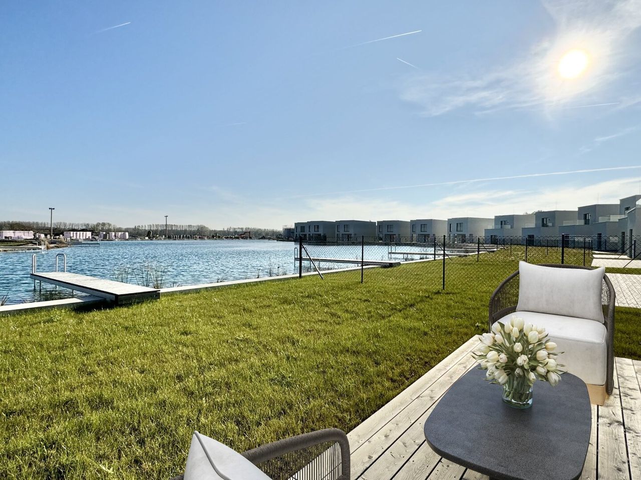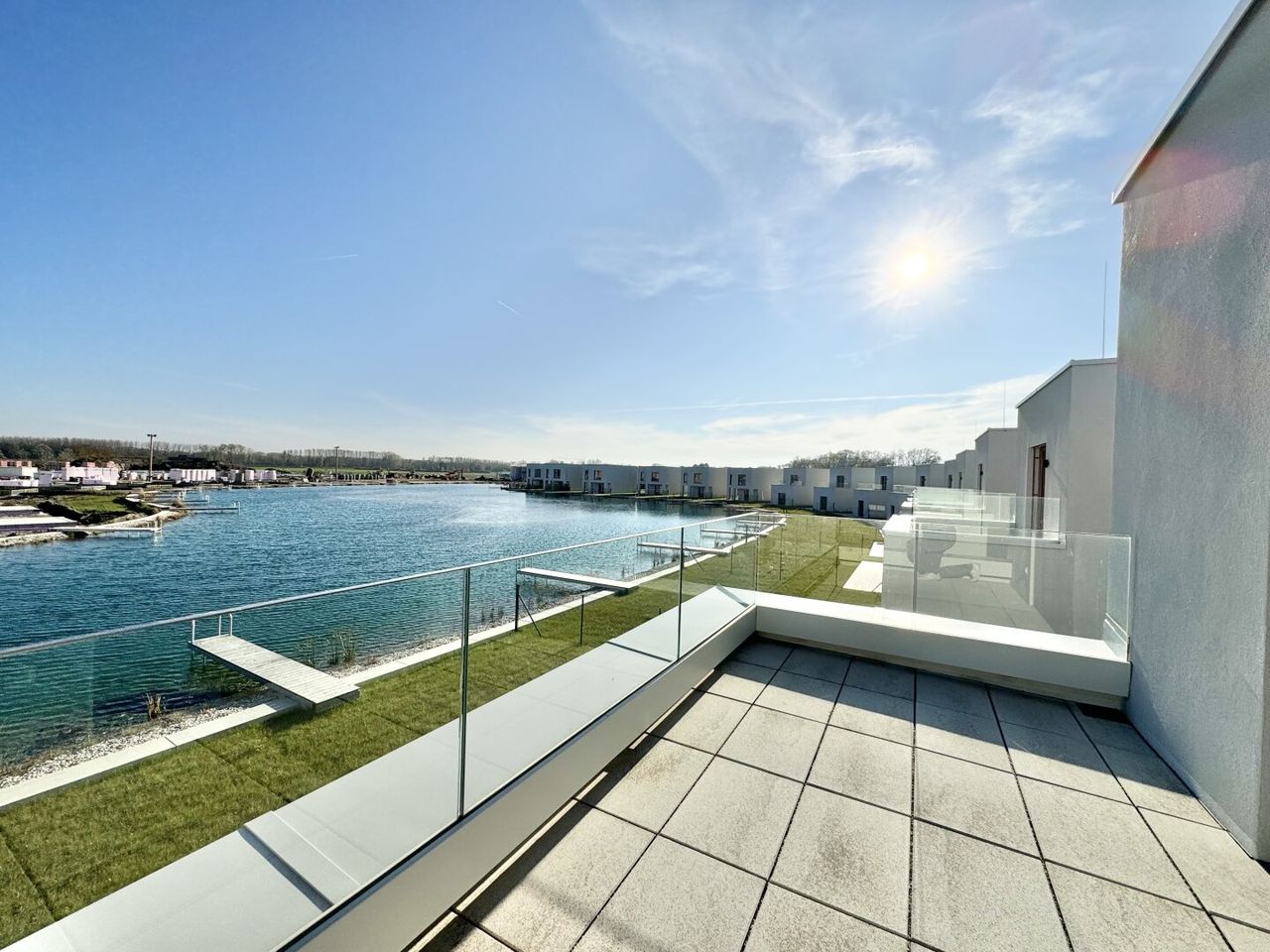Der SONNENWEIHER ist ein einzigartiges Wohnprojekt im Herzen der Genussregion Wagram, nahe dem Schloss Grafenegg, das Wohlbefinden und Entspannung bietet. Die moderne Seehaus-Anlage besteht aus 170 Seehäusern mit unterschiedlichen Haustypen: Reihenhaus, Doppelhaus und Einfamilienhaus. Die Häuser verfügen über entweder 4 oder 5 Zimmer mit jeweils eigener Terrasse, Garten und direkten Zugang zu einem privaten ca. 36.000m² großen See. Umgeben von ökologischen Grünflächen und in der Nähe zu kulturellen Highlights und Naturaktivitäten, ist der SONNENWEIHER ideal gelegen. Hier können Sie dem Alltagsstress entfliehen und die Lebensqualität in vollen Zügen genießen.