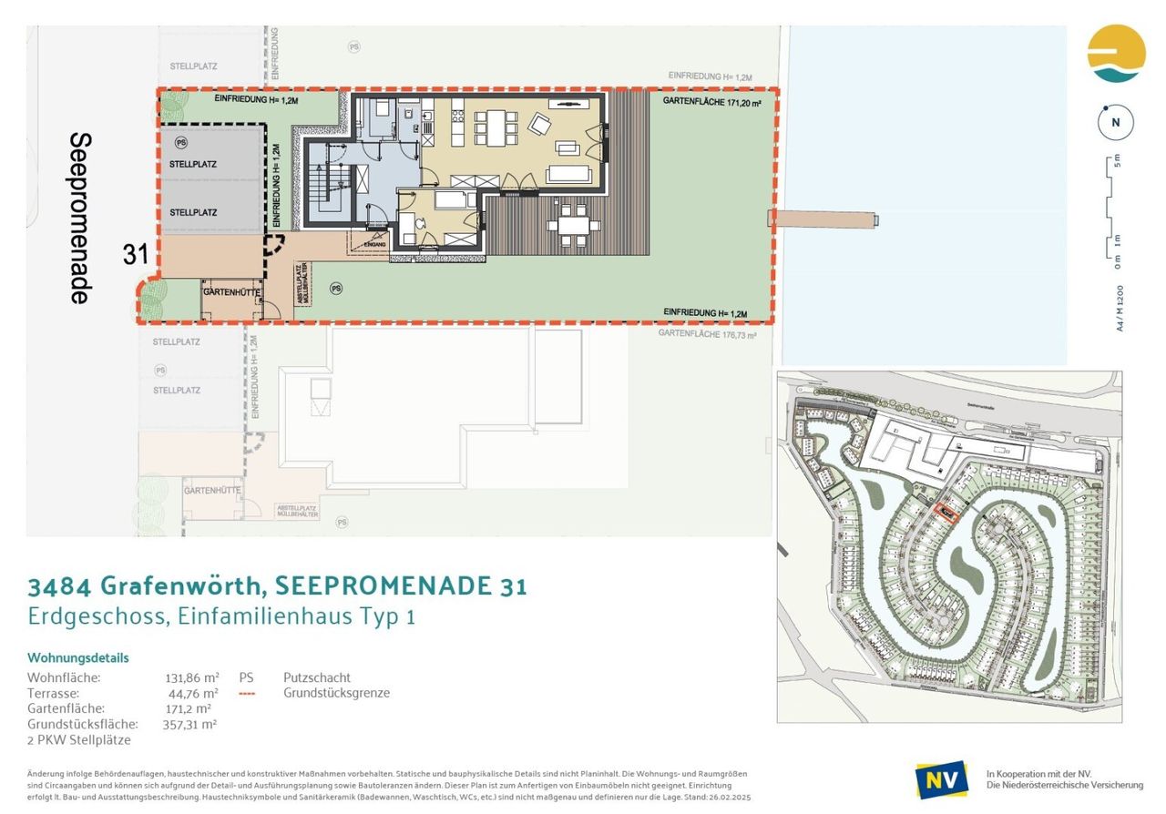 - Terrasse (ca. 34m²) + Garten (ca. 171m²) mit eigenem Seezugang