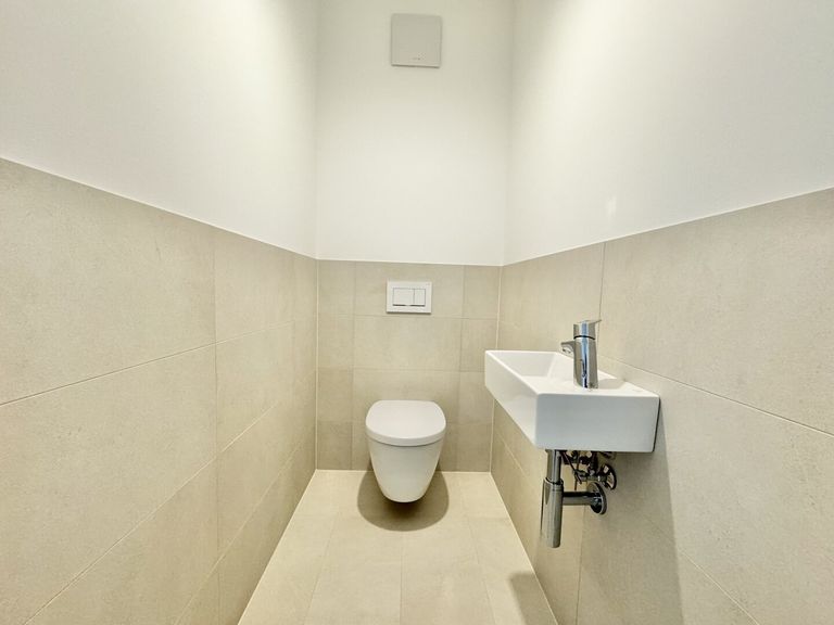 - hochwertiges Feinsteinzeug in Bad und WC