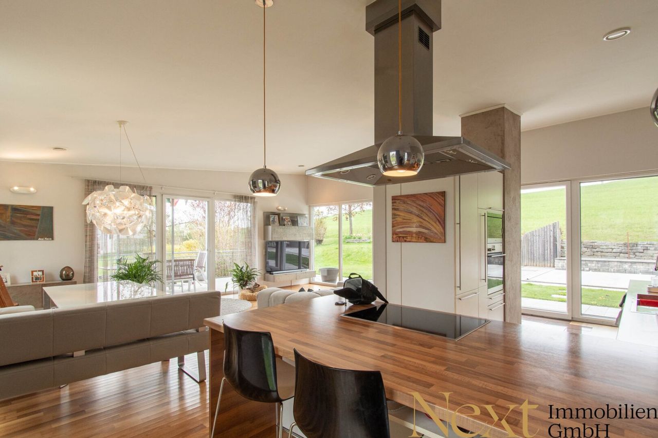 Der großzügige Garten wird schnell zum Lebensmittelpunkt: Ob entspannte Stunden am Pool, gesellige Abende im stilvoll überdachten Outdoor-Loungebereich oder einfach das Genießen der umliegenden Natur – hier entsteht Lebensqualität auf höchstem Niveau.
