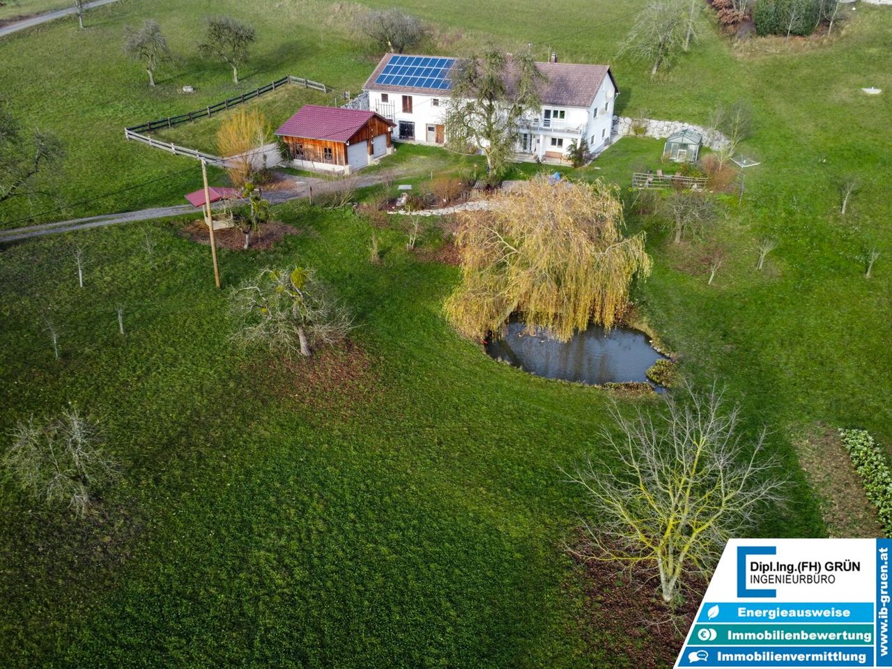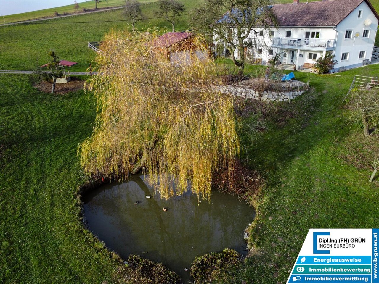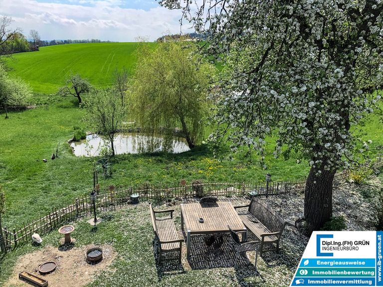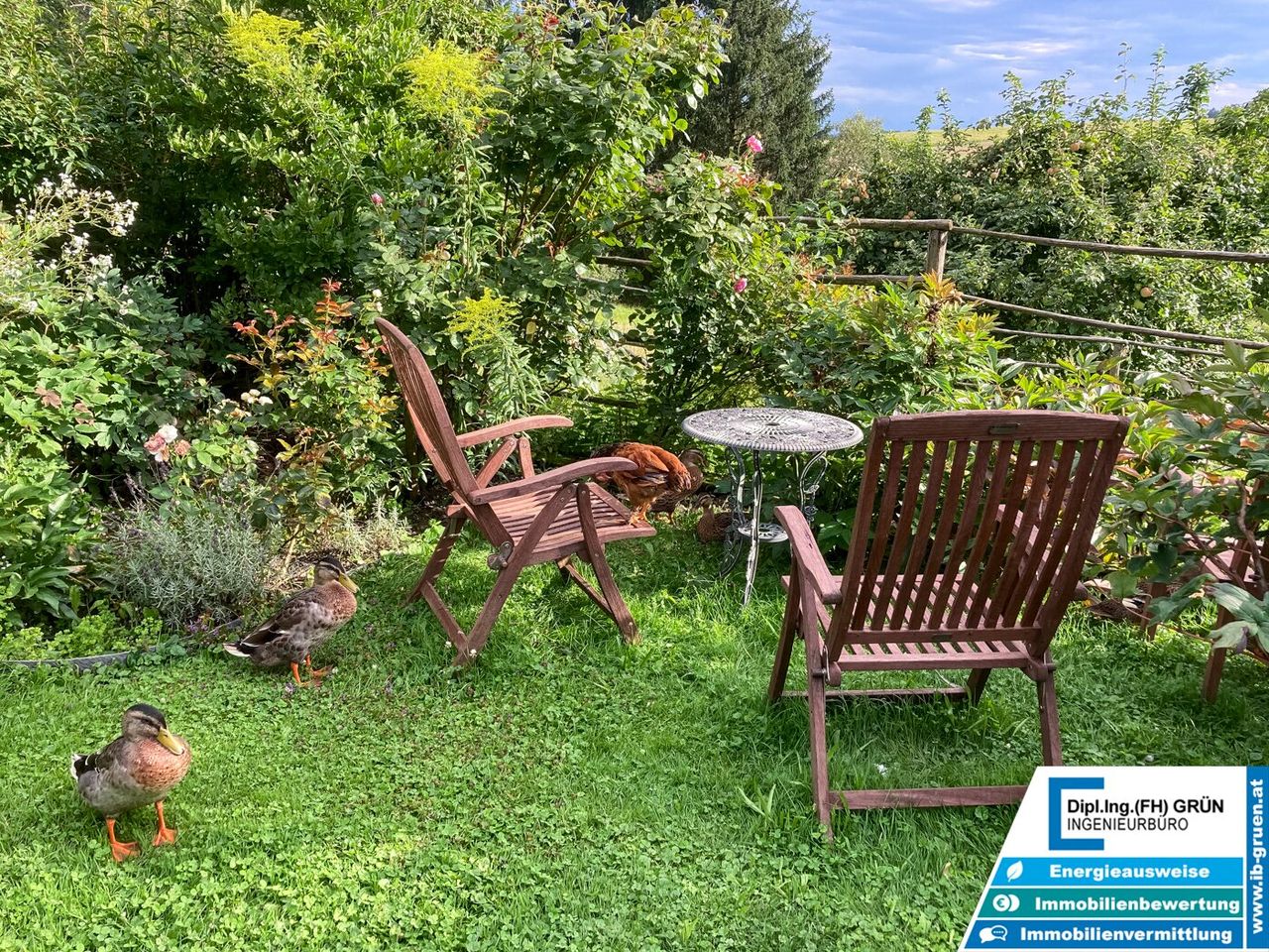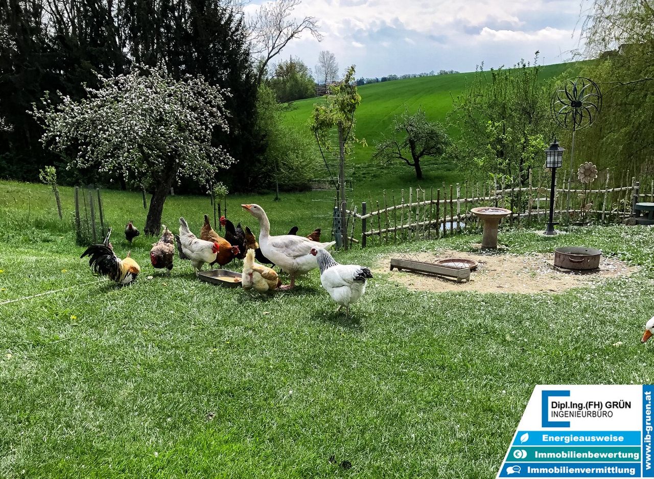 Ein großer Teich bietet ein kleines Paradies für die hauseigenen Enten und Gänse. Darüber hinaus stehen alte Obstbäume, Holunderbeeren, Himbeersträucher und vieles mehr zur Verfügung – perfekte Voraussetzungen für Selbstversorgung oder landwirtschaftliche Projekte.
