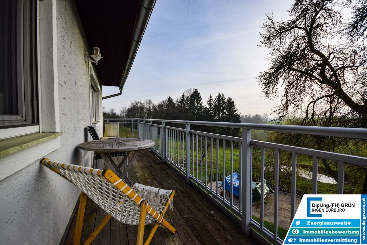 Zwei Terrassen, ein großzügige Balkon sowie der freie Blick auf die umliegenden Wiesen und Hügel machen das Wohnen besonders angenehm. Die Lage ist äußerst ruhig, dennoch ist die nächste Bus- und Bahnhaltestelle nur rund 500 Meter entfernt.