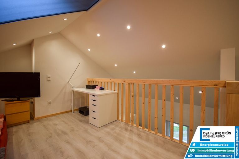 Ein besonderes Highlight ist der 2024 ausgebaute Heuboden im Dachgeschoss, der mit einer traumhaften Galerie fasziniert.