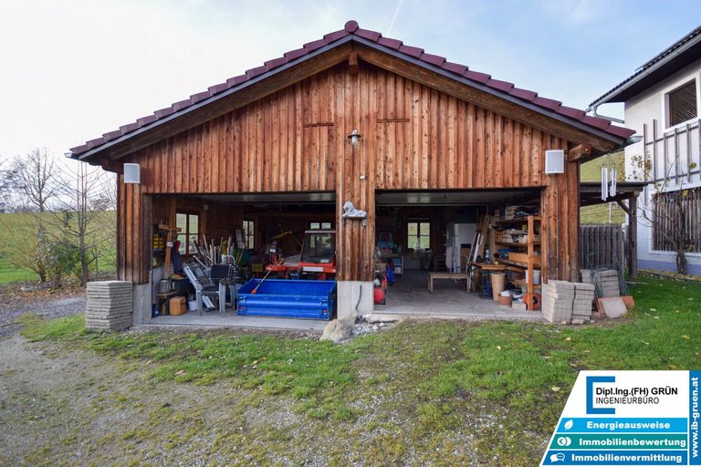 Zum Anwesen gehört zudem eine 2013 errichtete Maschinenhalle. Das gesamte Objekt wird beinahe voll möbliert und komplett ausgestattet verkauft – inklusive aller notwendigen Geräte: Reform-Mähtrak, Scheibenmähwerk, Kreiselheuer, Schwader, Hecklade, Balkenmäher, Kreissäge, Kärcher, uvm.