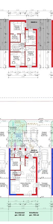 Grundstück und Außenbereich: Jedes Haus verfügt über eine Grundfläche zwischen 342 und 438 m², was Ihnen einen eigenen Garten von 154 bis 319 m² bietet. Zwei Stellplätze, ein gedeckter und ein freier, stehen Ihnen zur Verfügung.