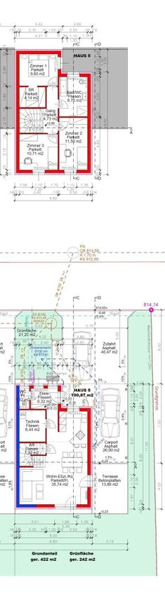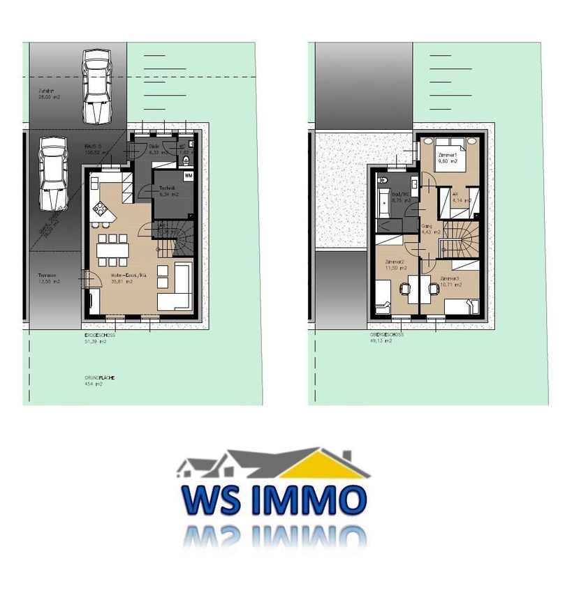 Grundstück und Außenbereich: Jedes Haus verfügt über eine Grundfläche zwischen 342 und 438 m², was Ihnen einen eigenen Garten von 154 bis 319 m² bietet. Zwei Stellplätze, ein gedeckter und ein freier, stehen Ihnen zur Verfügung.