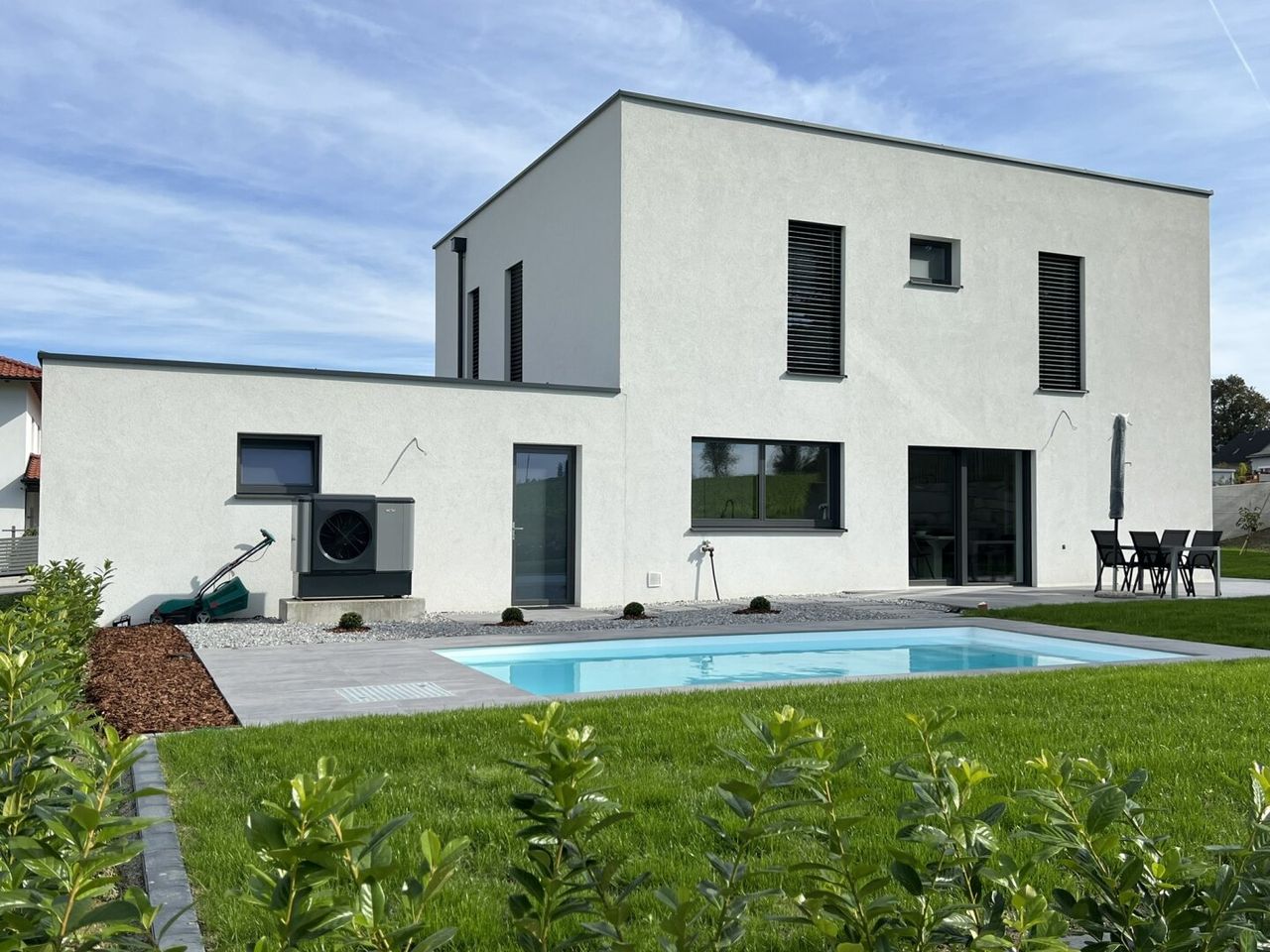 Dieses Haus befindet sich in einem äußerst gepflegten Zustand und wurde mit einem Fokus auf hochwertige Ausführung und Details gestaltet. Es verfügt über eine Wohnraumlüftung und eine Fußbodenheizung, die für ein angenehmes Raumklima sorgen, während die Luftwärmepumpe für eine energieeffiziente Beheizung sorgt. Die Vorbereitungen für eine Photovoltaikanlage sind bereits getroffen, sodass Sie das Haus bei Bedarf umweltfreundlich und nachhaltig betreiben können.