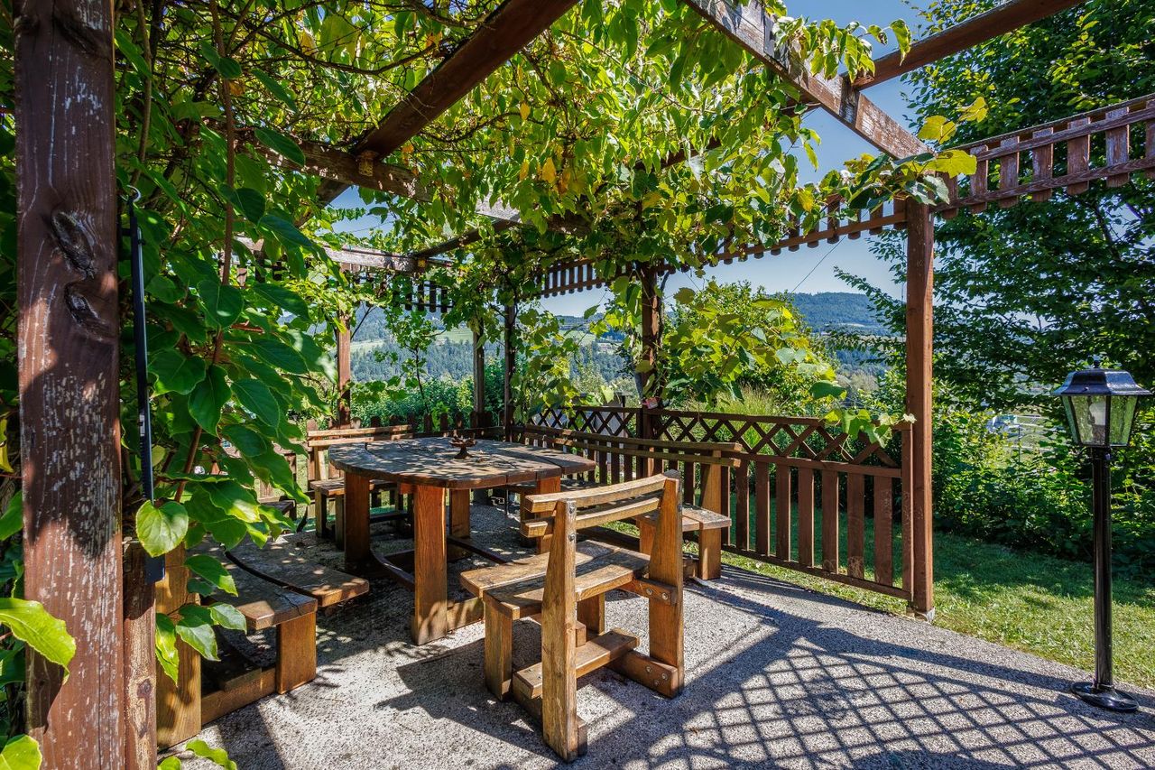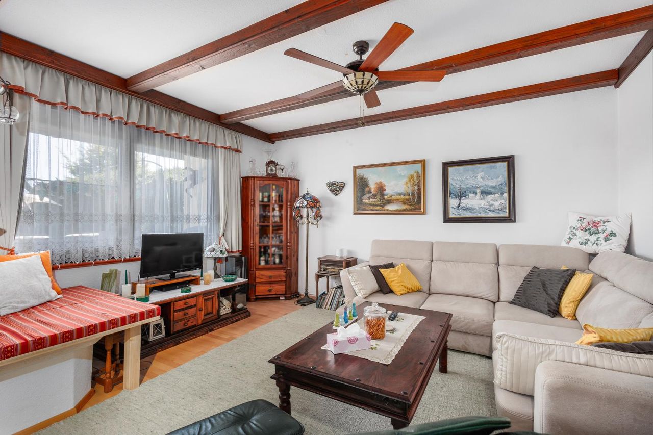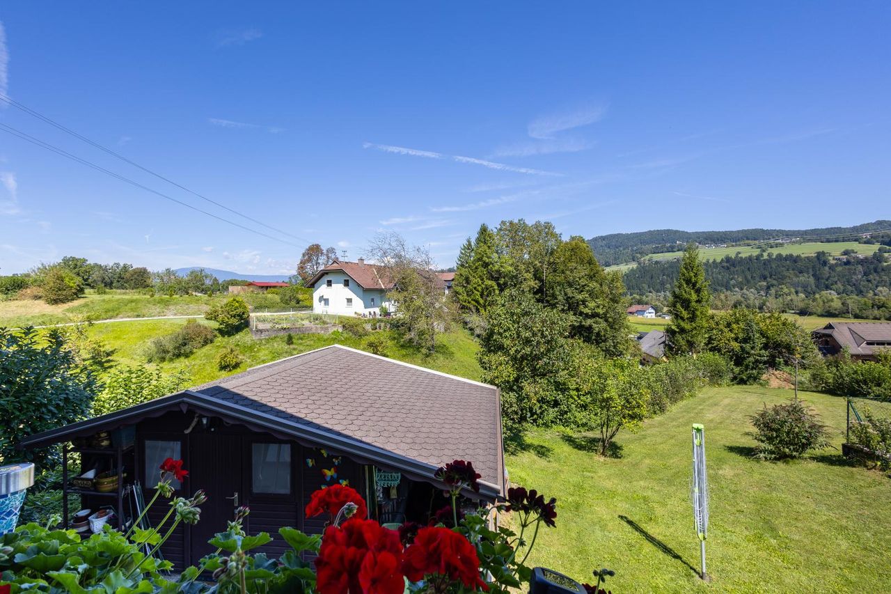 Dieser Bungalow mit rund 2.900 m² Garten bietet viel Platz für Familie, Hobbys und Erholung. Vom Wohnzimmer aus gelangen Sie direkt auf die Terrasse und den Balkon – mit wunderschönem Blick über die Drau.
