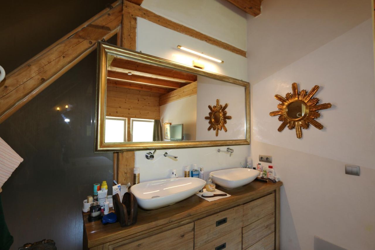 * aufwendig und liebevoll und mit viel Geschmack, Altholz und modernen Komponenten saniert