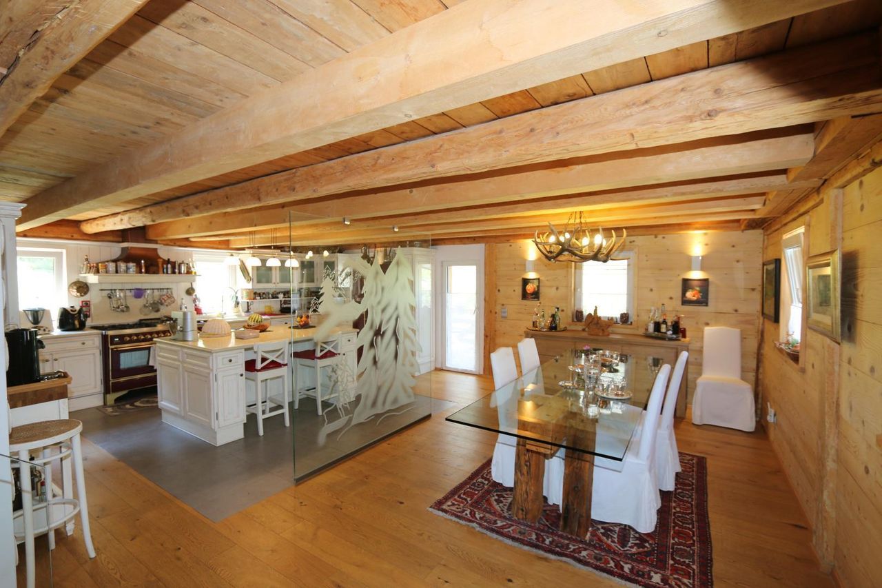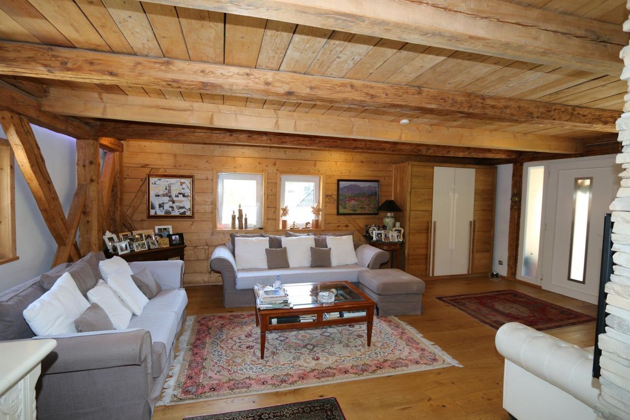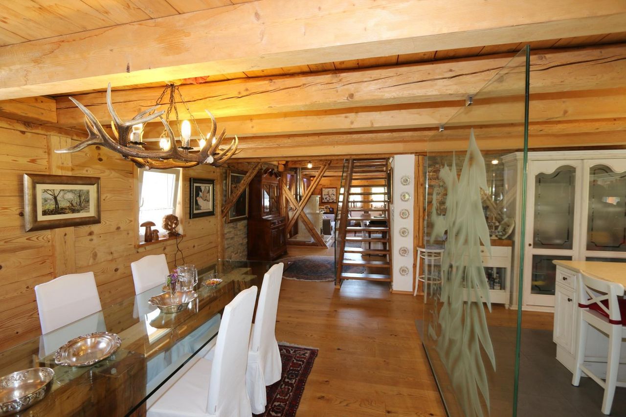 * Chalet-artige Wohnung mit riesigem Garten, "beinahe ein ganzes Haus" * sehr idyllisches und nette, Wohnung in Bleiberg-Kreuth * aufwendig und liebevoll und mit viel Geschmack, Altholz und modernen Komponenten saniert * ruhig gelegen in friedlicher Natur * ca. 1.744 m² Grundstücksgröße * 2 wunderschöne Terrassen zum Entspannen * Pizzaofen im Freien * Wohnfläche: ca. 180 m² * EG: Windfang, großer offener Wohnraum bestehend aus Wohnlandschaft, Essbereich, großer Küche und eine Terrasse * OG: Gästezimmer mit Bad und WC (ca. 29 m²), Masterbedroom mit WC, freistehender Badewanne, Doppelwaschbecken und begehbarem Schrank (ca. 50 m²) * Werkstatt im Nebengebäude * 2...