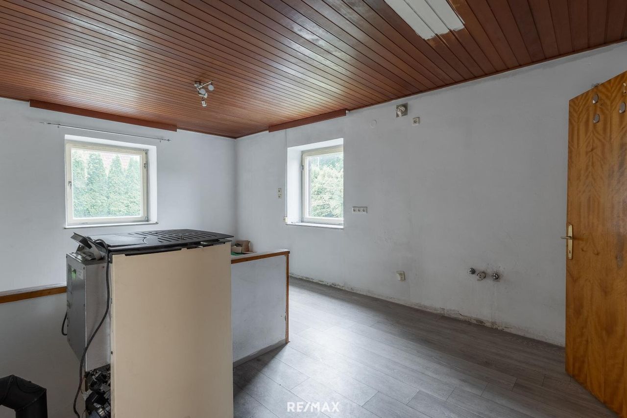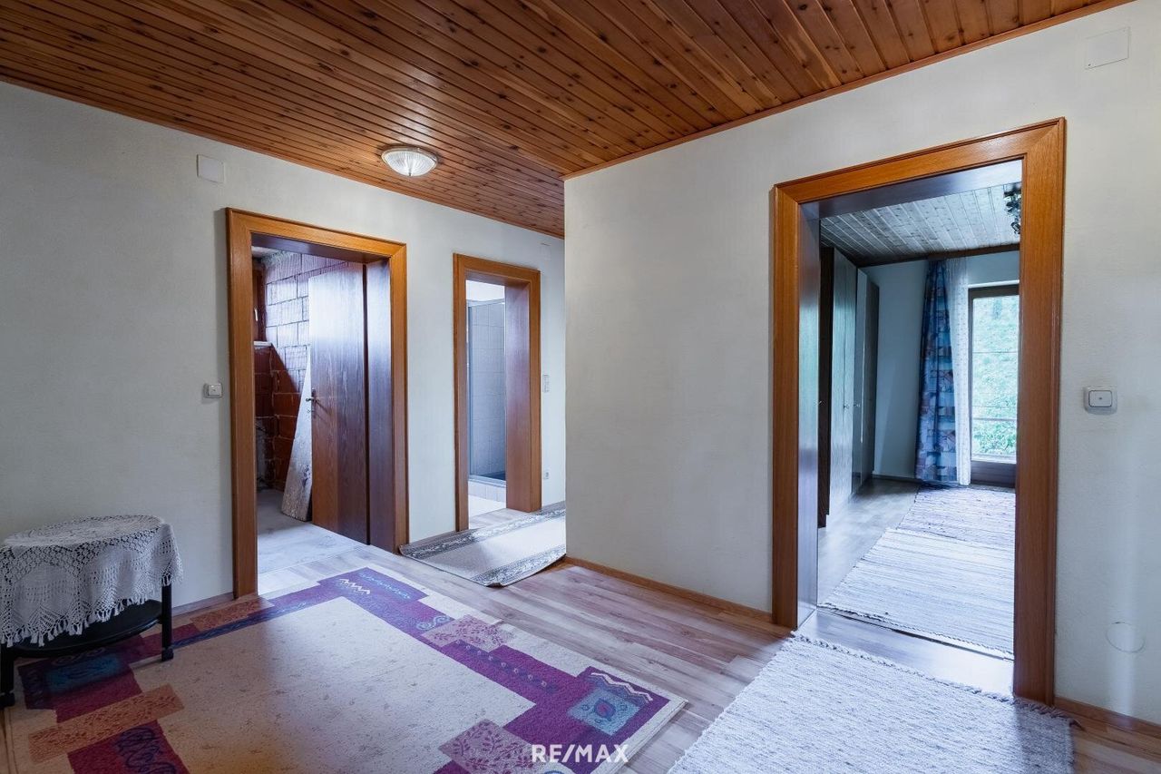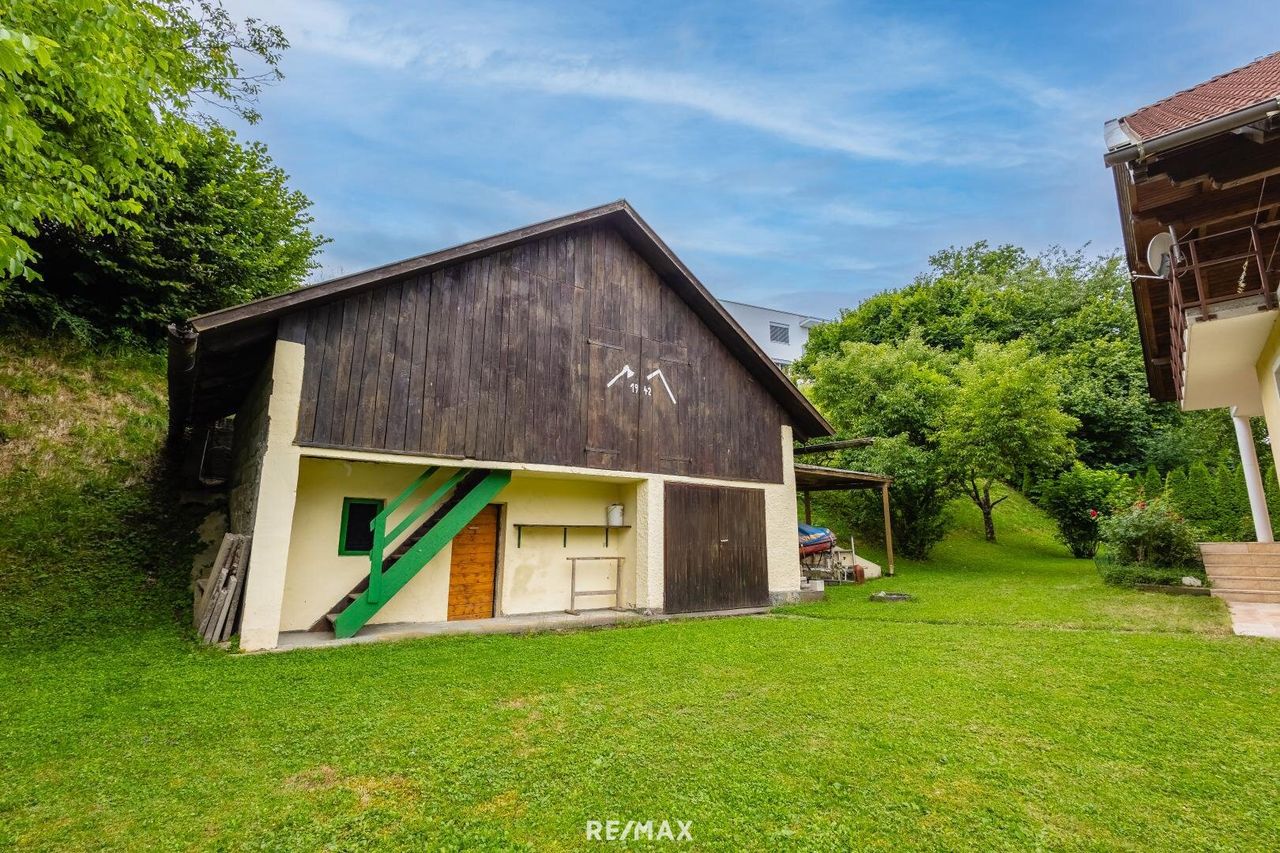 Großzügiges Einfamilienhaus mit Nebengebäude am südlichen Stadtrand von Villach. Diese vielseitige Liegenschaft auf einem ca. 1.387 m² großen Grundstück bietet ein Einfamilienhaus mit rund 175 m² Wfl., (voll unterkellert) sowie ein zusätzliches Nebengebäude mit ca. 80 m² Wfl. Das Haupthaus verfügt über 7 Zimmer, 2 Bäder, Küche mit Essbereich sowie Balkon und Terrasse je ca. 15,5 m². Zwei Zimmer im Obergeschoss sind noch im Innen-Rohbauzustand – ideal zur individuellen Gestaltung. Das sanierungsbedürftige, aber solide Nebenhaus aus 1934 ist teilunterkellert und bereits mit Strom, Wasser und Heizung ausgestattet – perfekt als Einliegerwohnung, Büro oder zusätzliche Wohneinheit. Eine Doppelgarage mit Arbeitsgrube und...