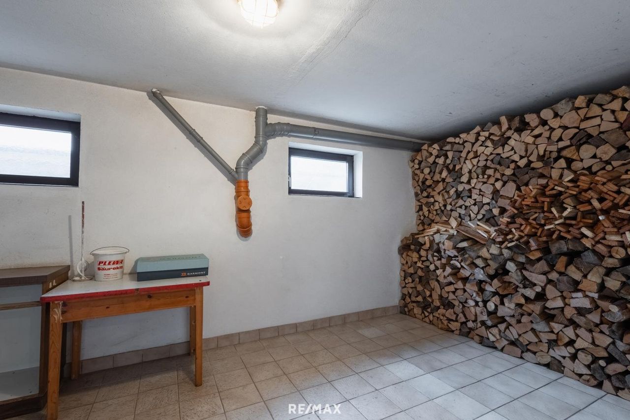 Das sanierungsbedürftige, aber solide Nebenhaus aus 1934 ist teilunterkellert und bereits mit Strom, Wasser und Heizung ausgestattet – perfekt als Einliegerwohnung, Büro oder zusätzliche Wohneinheit. Eine Doppelgarage mit Arbeitsgrube und Kaminanschluss (ideal für Hobbyschrauber oder KFZ - Begeisterte) sowie ein großzügiger Garten runden das Angebot ab.