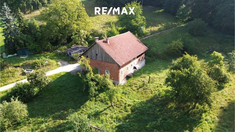 Sanierungsbedürftiges Sacherl in idyllischer Alleinlage – großes Grundstück mit Waldanteil und Wohngebietswidmung