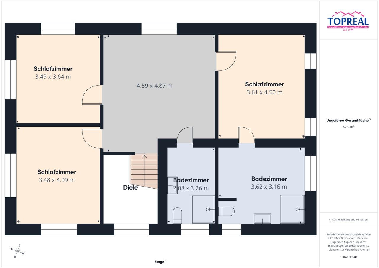 Das Obergeschoss beeindruckt mit einem außergewöhnlich großzügigen Flur (ca. 22,5 m²), der dem gesamten Bereich eine elegante Offenheit verleiht.