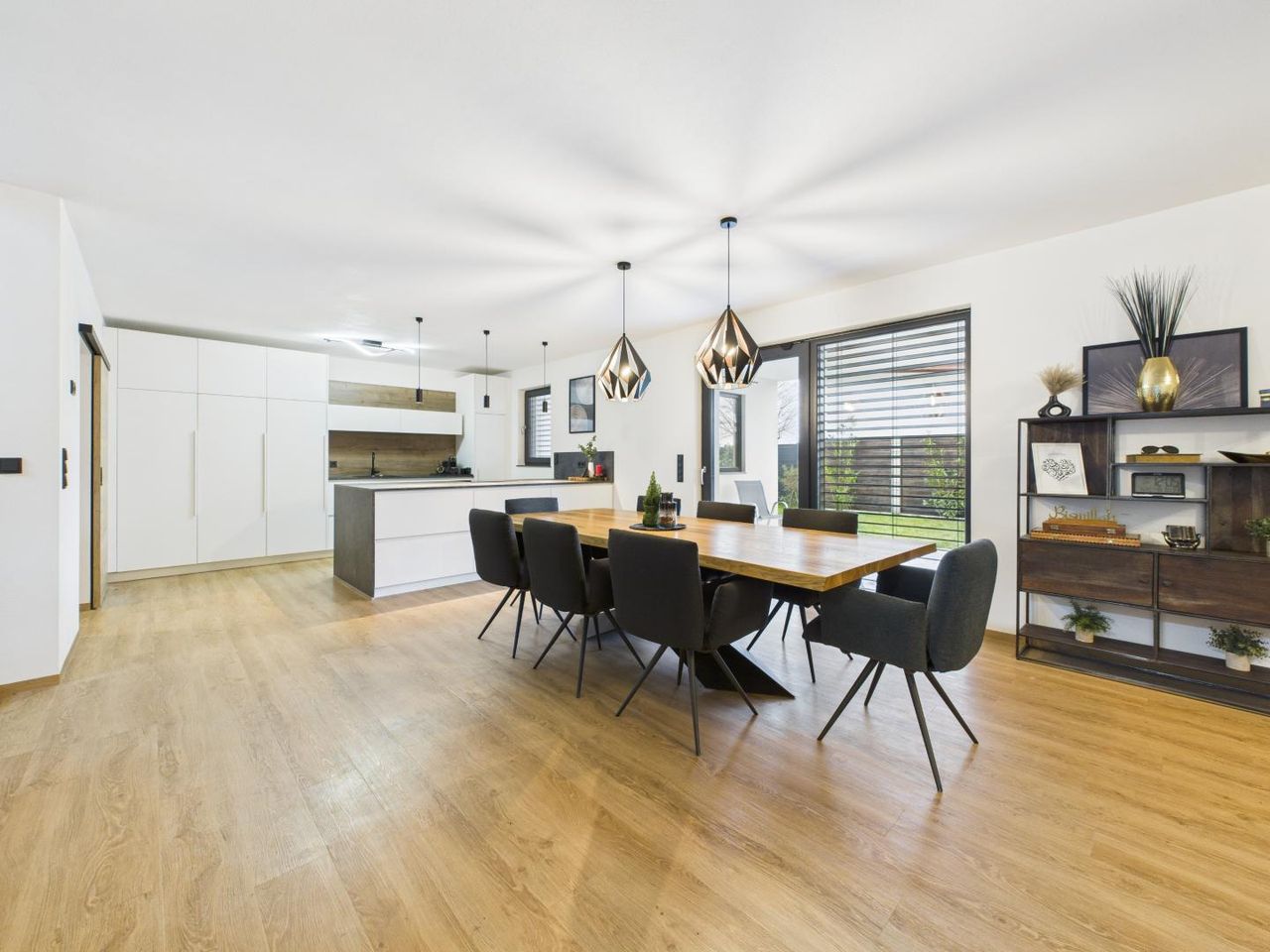 Der rund 52,2 m² große Wohn- und Essbereich bildet das Herzstück des Hauses – ein Raum, der an das Wohngefühl einer modernen Villa erinnert.