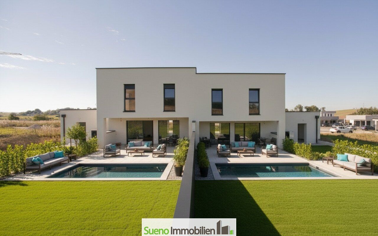 Modernes Doppelhaus am Feldrand – perfekt für alle, die naturnah leben und trotzdem gut angebunden bleiben möchten.