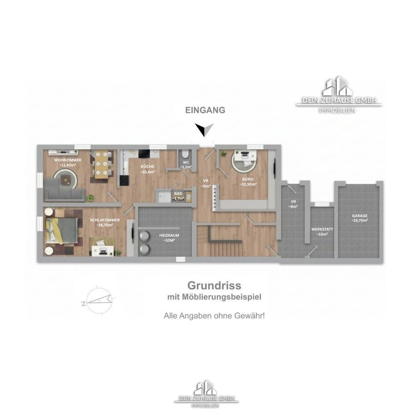 Auf ~175 m² Fläche in zwei Wohneinheiten mit jeweils eigenem Eingang bietet es reichlich Raum für Ihre individuellen Wünsche und die ganze Familie. Erdgeschoß: