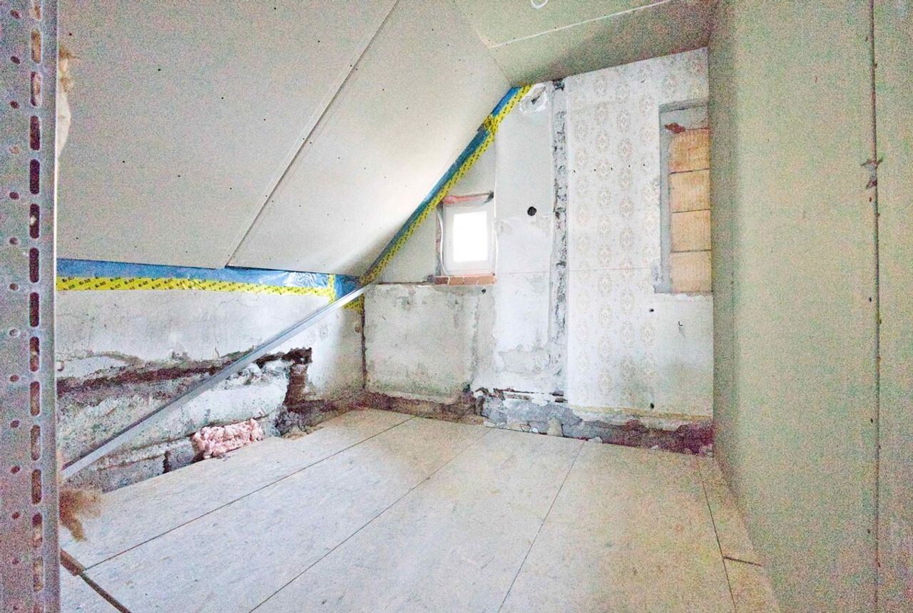 Am Haus wurde bereits gearbeitet. Fenster wurden erneuert und die Innenräume vorbereitet, sodass der weitere Ausbau direkt fortgesetzt werden kann.