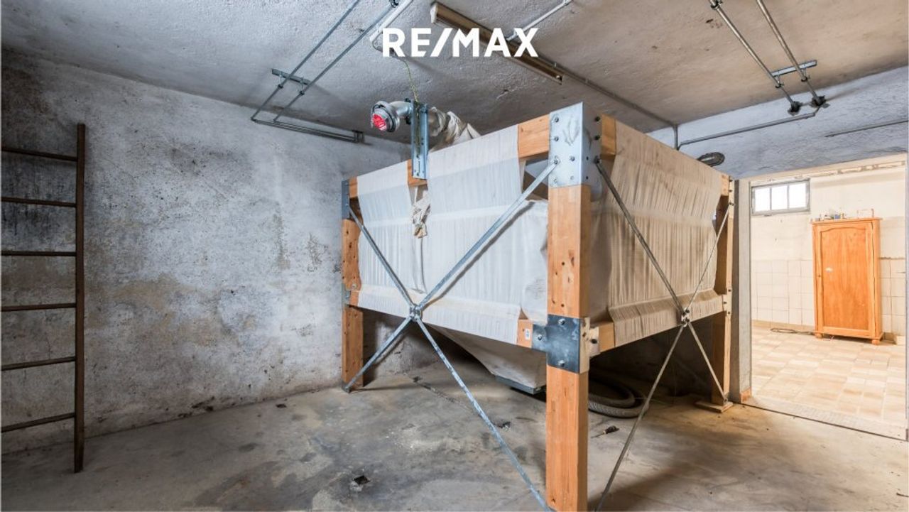Das Gebäude ist teilweise unterkellert. Der Kellerbereich umfasst ca. 43 m² und hat ausreichend Platz für Haustechnik und Lagerflächen. Die Beheizung erfolgt über eine moderne Pelletheizung. Das Pelletslager ist als Softbag-Lösung ausgeführt und ermöglicht eine platzsparende sowie komfortable Brennstofflagerung.