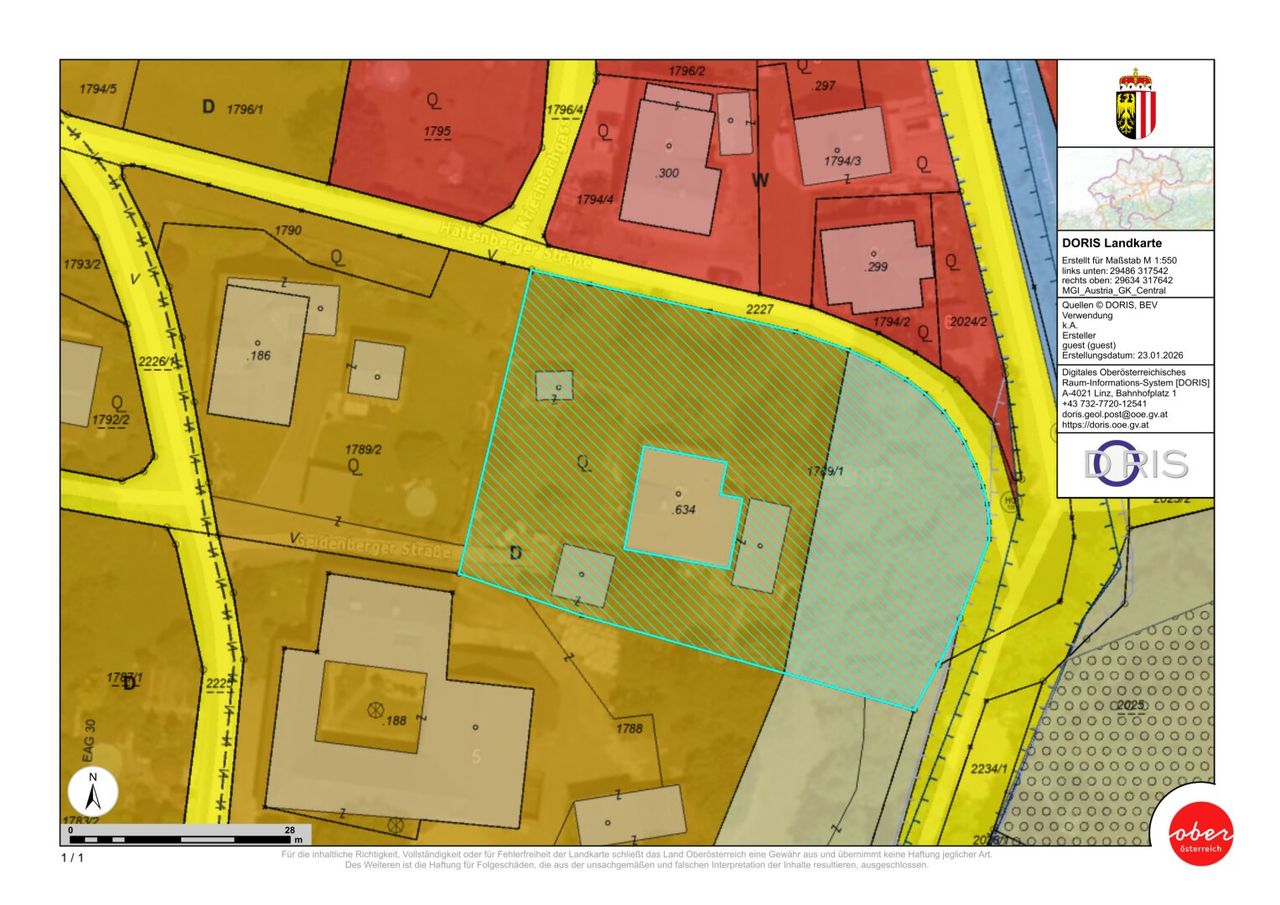 Das 2.667 m² große Grundstück gliedert sich in ca. 1.748 m² Bauland mit Dorfwidmung sowie ca. 919 m² Waldfläche, die sich im hinteren Bereich des Grundstücks anschließt und zusätzliche Privatsphäre...