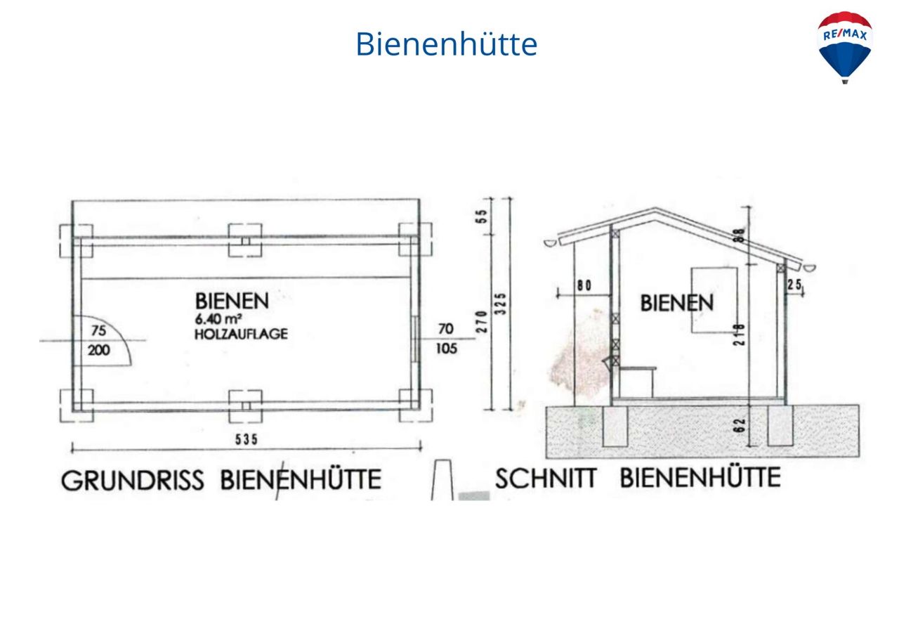 Ergänzt wird das Raumangebot durch mehrere Nebenflächen und Nebengebäude. Eine Doppelgarage mit ca. 25 m², ein Fahrrad- und Geräteraum mit ca. 10,5 m², überdachte Unterstände mit ca. 24 m² sowie eine Bienenhütte mit ca. 6,4 m². Diese Flächen bieten vielfältige Nutzungsmöglichkeiten für Hobby, Lagerung oder handwerkliche Tätigkeiten.