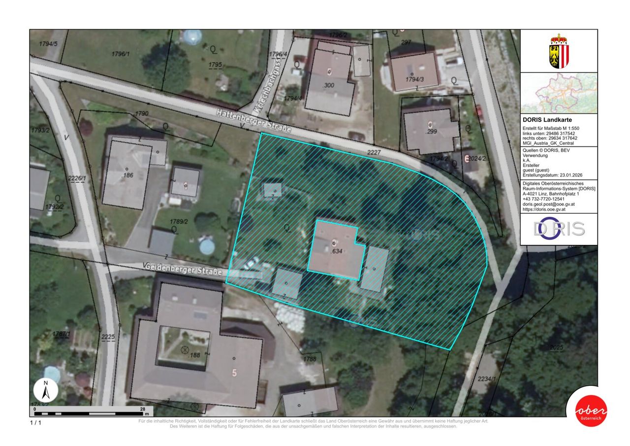 Das 2.667 m² große Grundstück gliedert sich in ca. 1.748 m² Bauland mit Dorfwidmung sowie ca. 919 m² Waldfläche, die sich im hinteren Bereich des Grundstücks anschließt und zusätzliche Privatsphäre sowie Naturgenuss bietet.