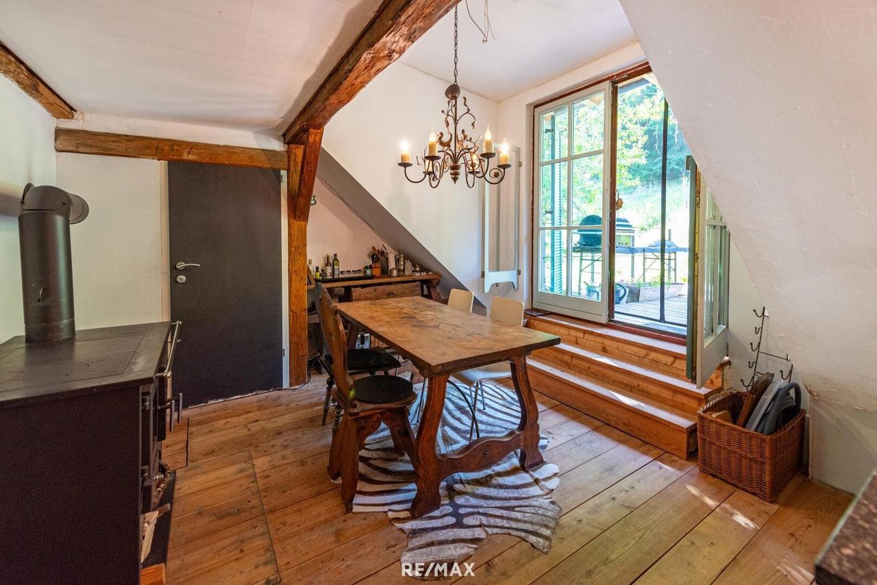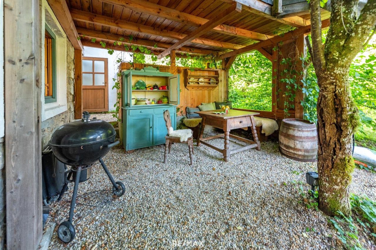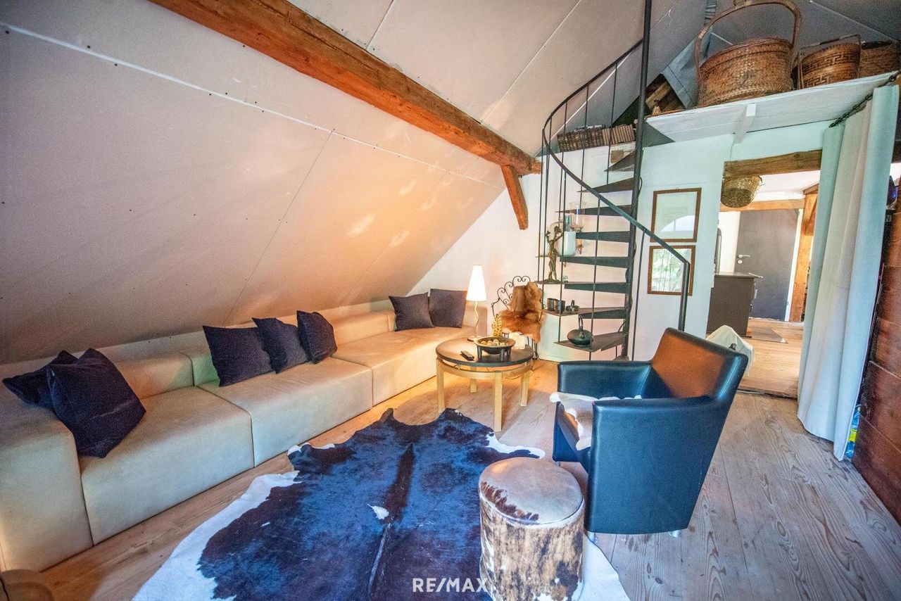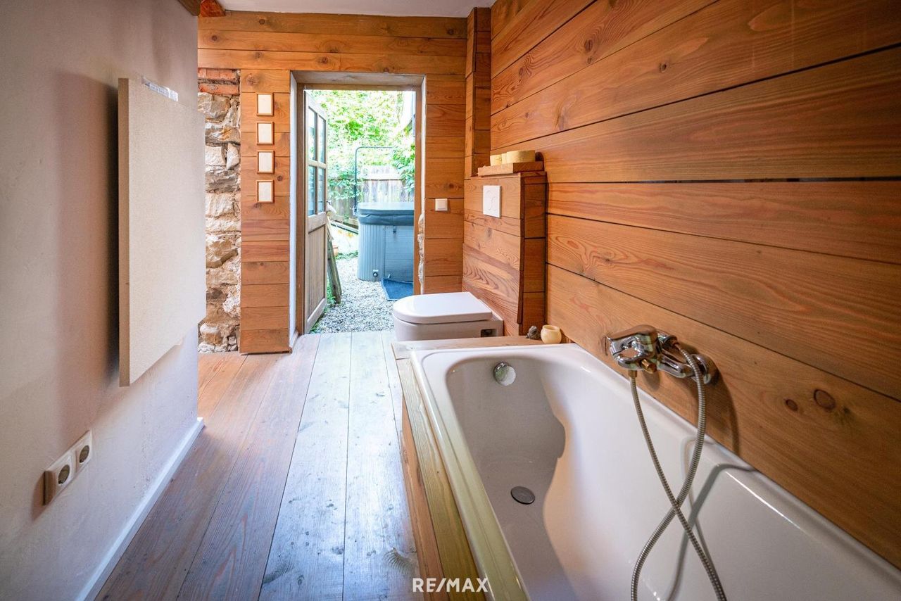 DAS besondere im Grünen! Willkommen bei diesem bezaubernden Sacherl, das inmitten der Naturidylle zur Erholung einlädt. Das rustikale Erdgeschoss verzaubert mit traditionellem Charme und wird erfolgreich über Airbnb vermietet. Ein eigener Eingang ist vorhanden. Es bietet 2 Schlafzimmer und ein modernes Bad mit Ausgang auf die Terrasse, wo schon der Jacuzzi auf Sie wartet. Das Obergeschoss bietet eine separate Wohneinheit. Sie wird schon bewohnt, aber diverse Fertigstellungsarbeiten sind noch von Nöten. Der direkte Zugang zum Garten, wo Sie in der Hängematte ideal relaxen und entspannen können. Gelegen in einer ruhigen, grünen Umgebung, bietet das Sacherl eine perfekte Kombination aus Naturerlebnis...