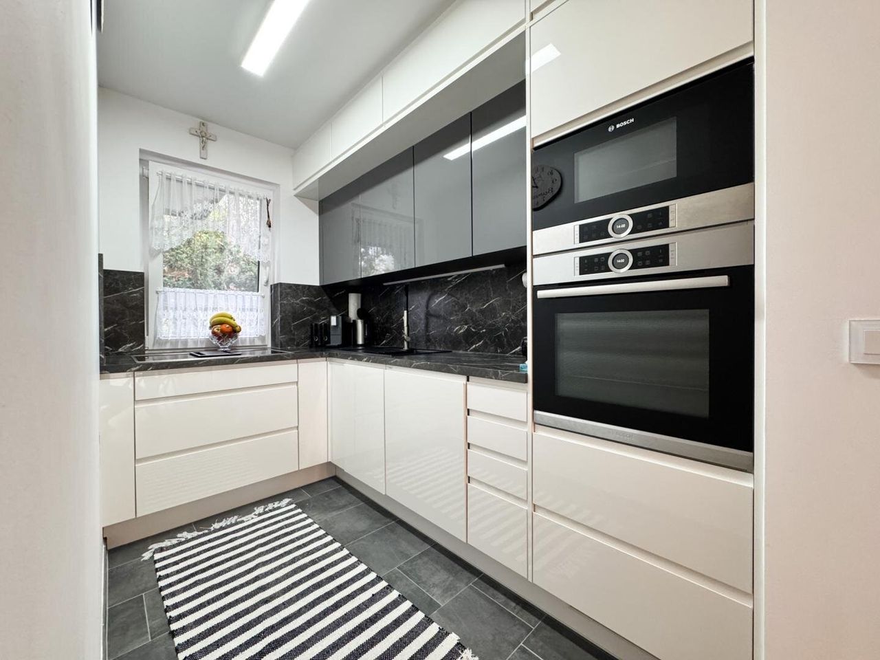 - hochwertige Küche und Ausstattung mit Großformatfliesen und Parkettböden