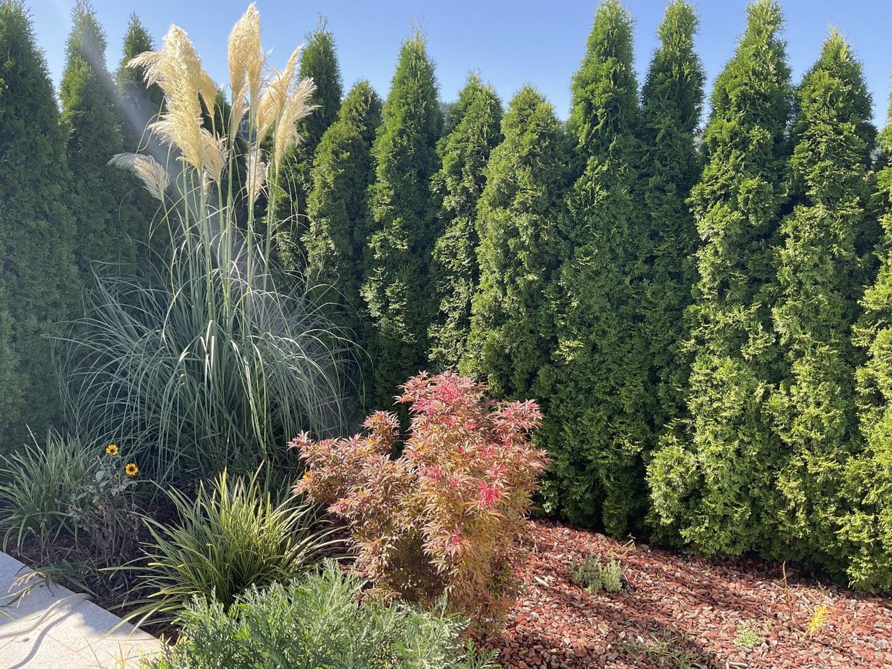 - großzügige Terrasse mit Blick in den Garten und Pool