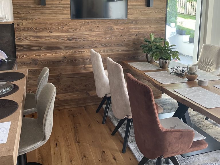 - alte Holzwände (Tirol) im Vorraum, Essbereich und Wohnzimmer
