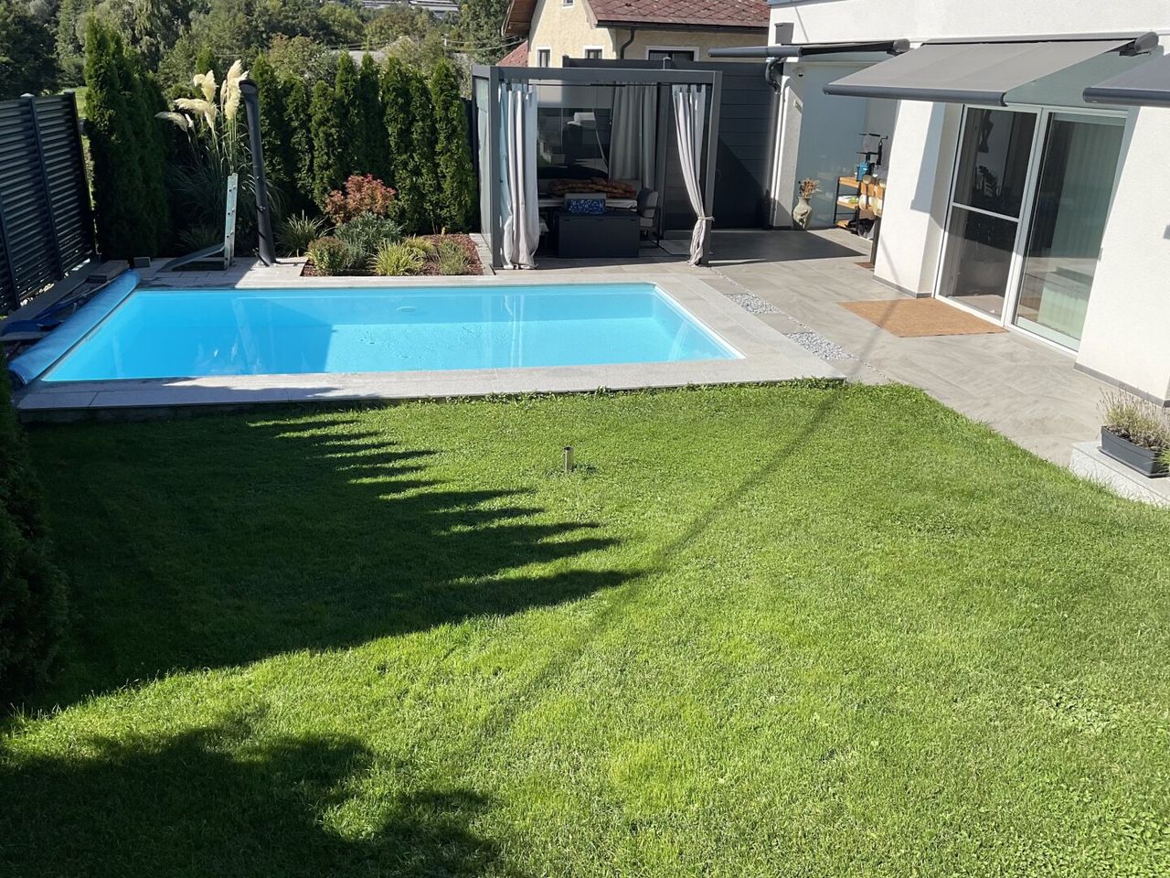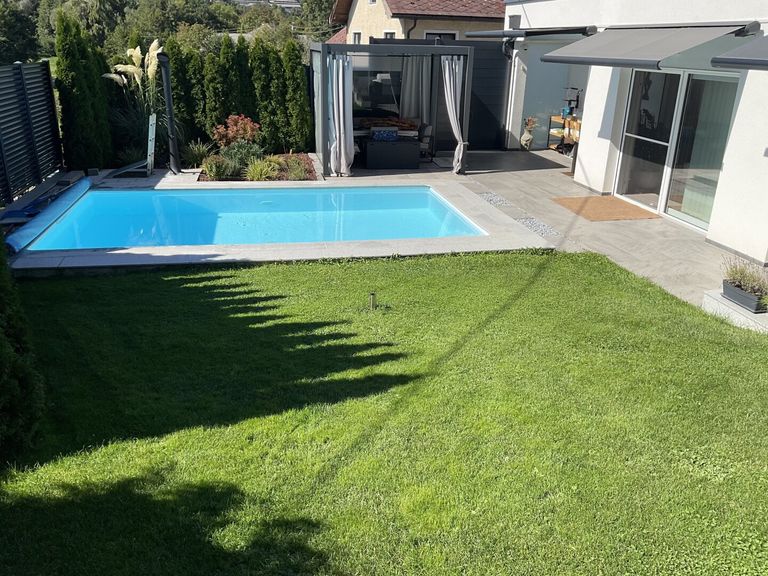 - Gartenlounge mit Poolblick