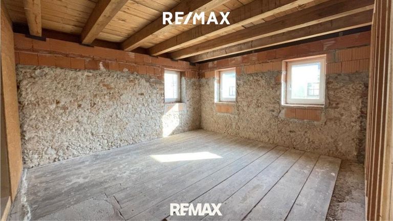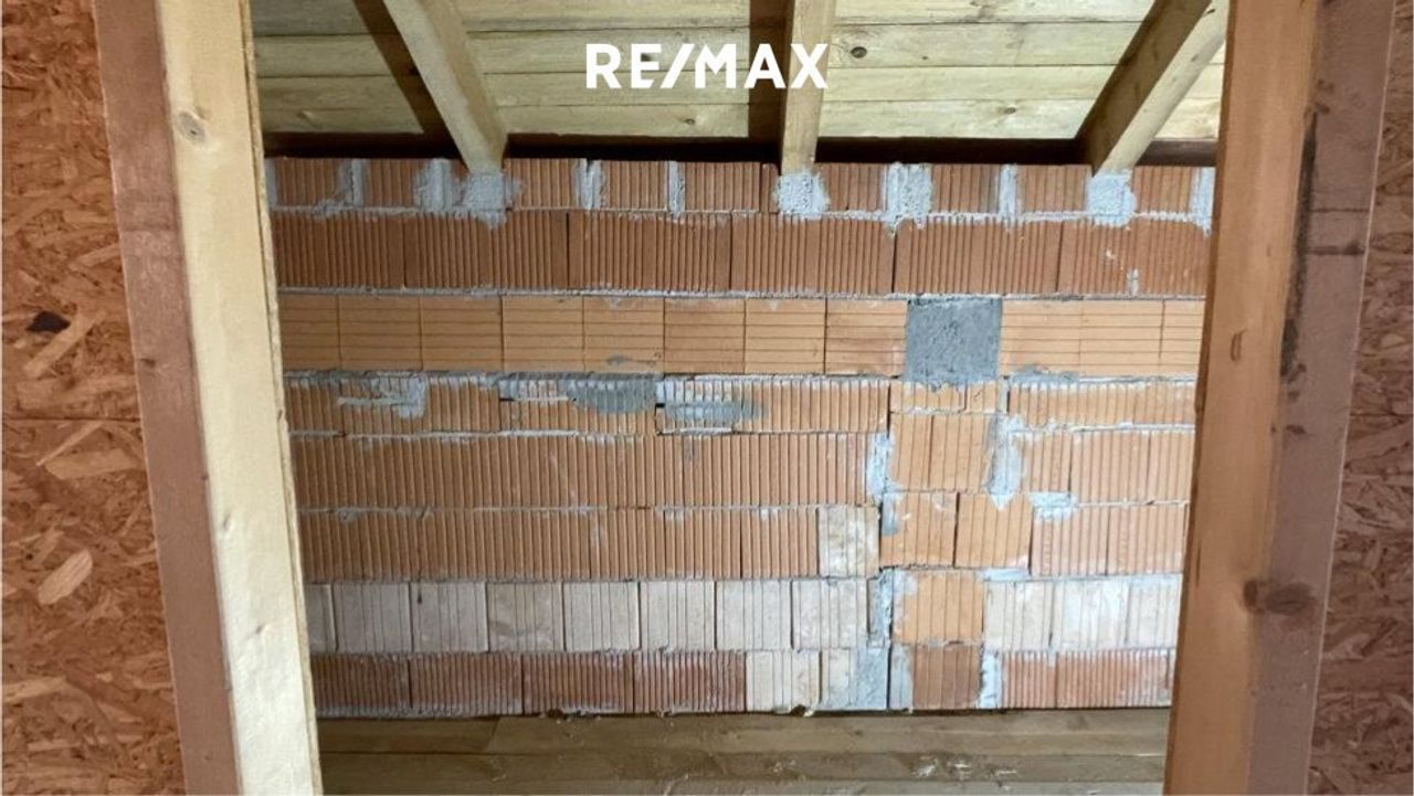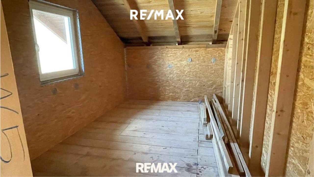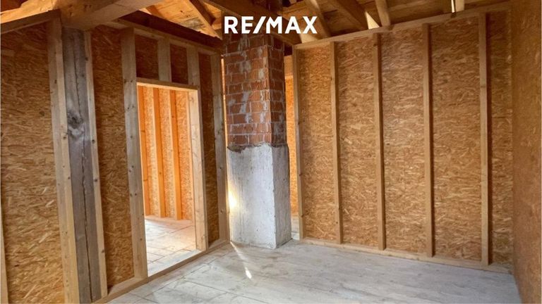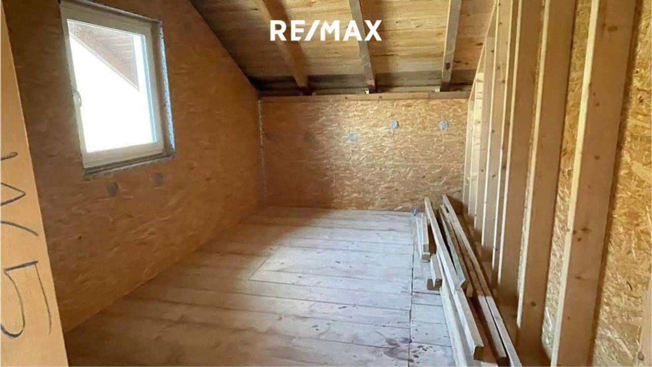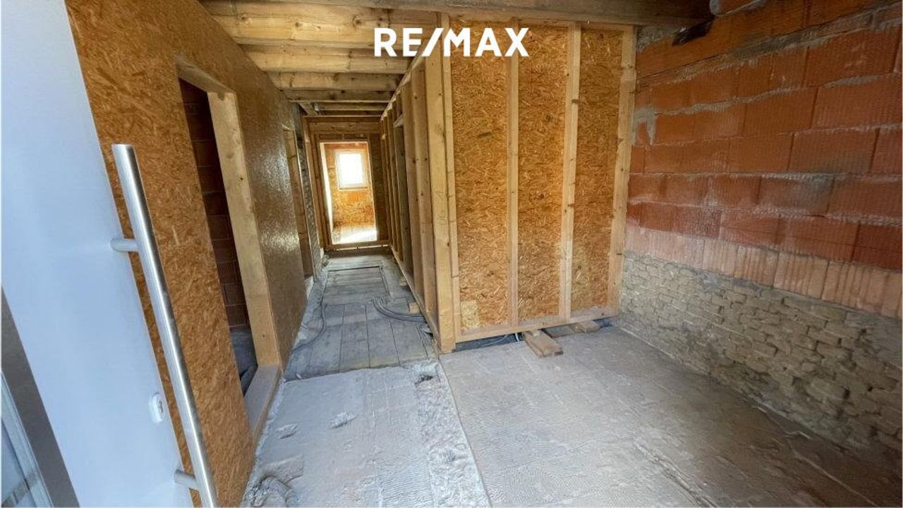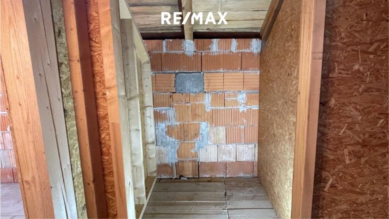 Küche, Wohnzimmer, 2 Schlafzimmer, WC, Bad und Vorraum. Das Dachgeschoß befindet sich im Rohbaustadium.