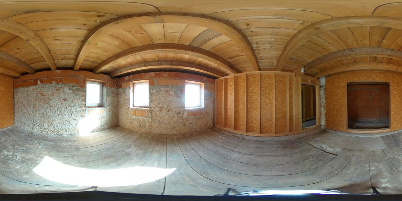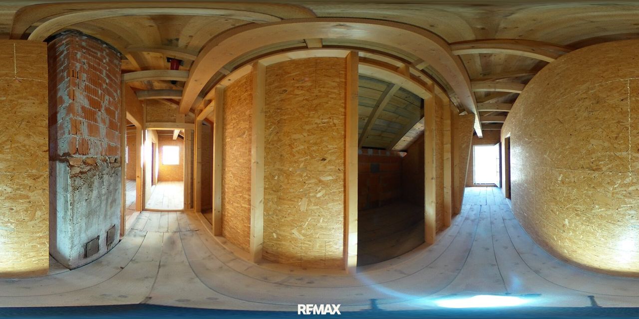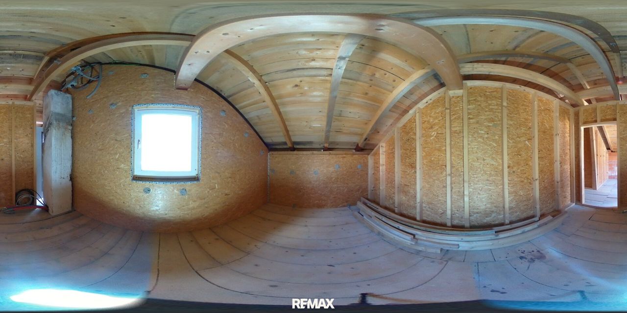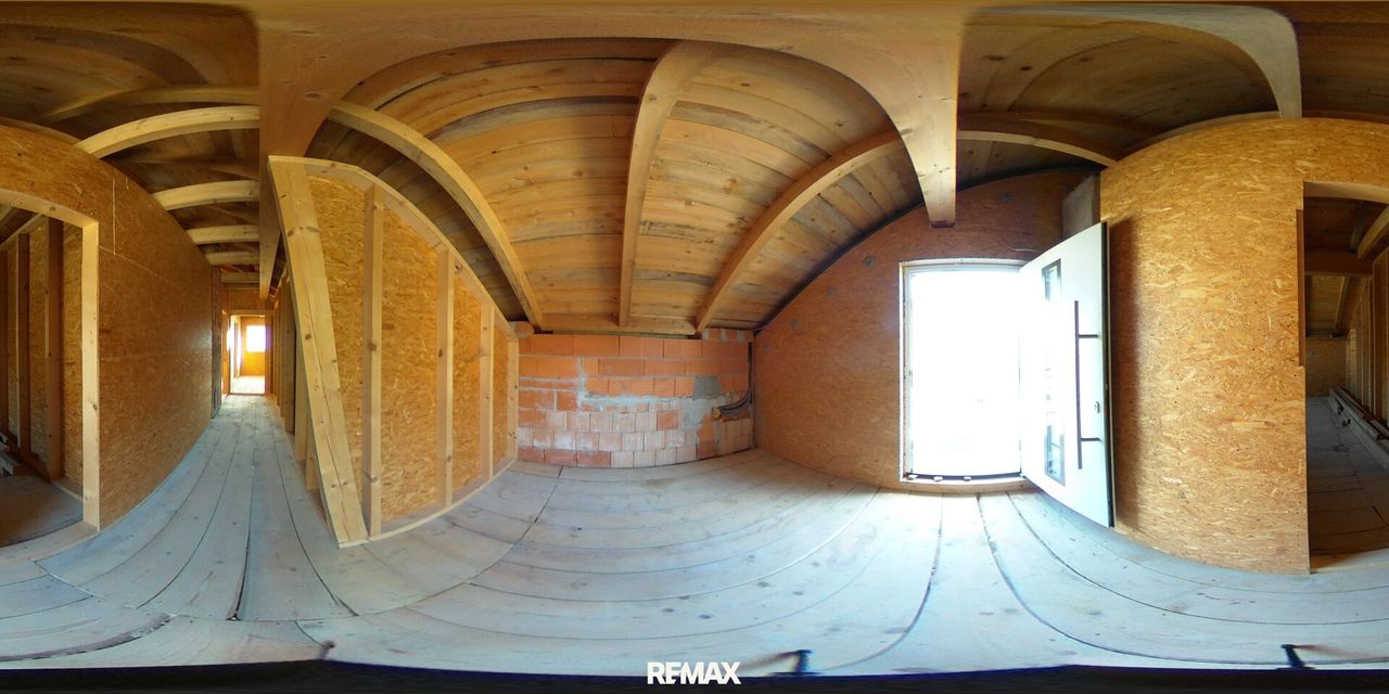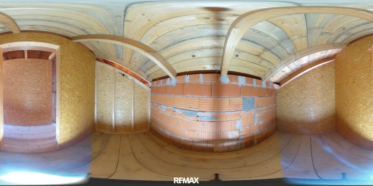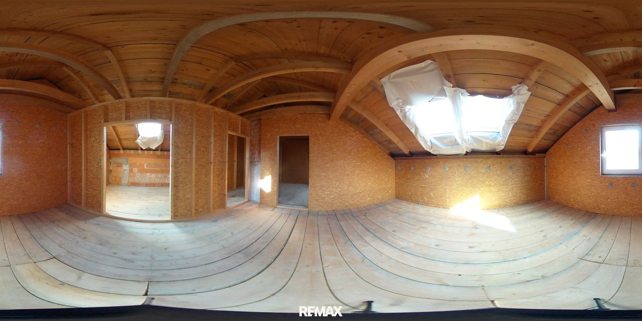 Küche, Wohnzimmer, 2 Schlafzimmer, WC, Bad und Vorraum. Das Dachgeschoß befindet sich im Rohbaustadium.