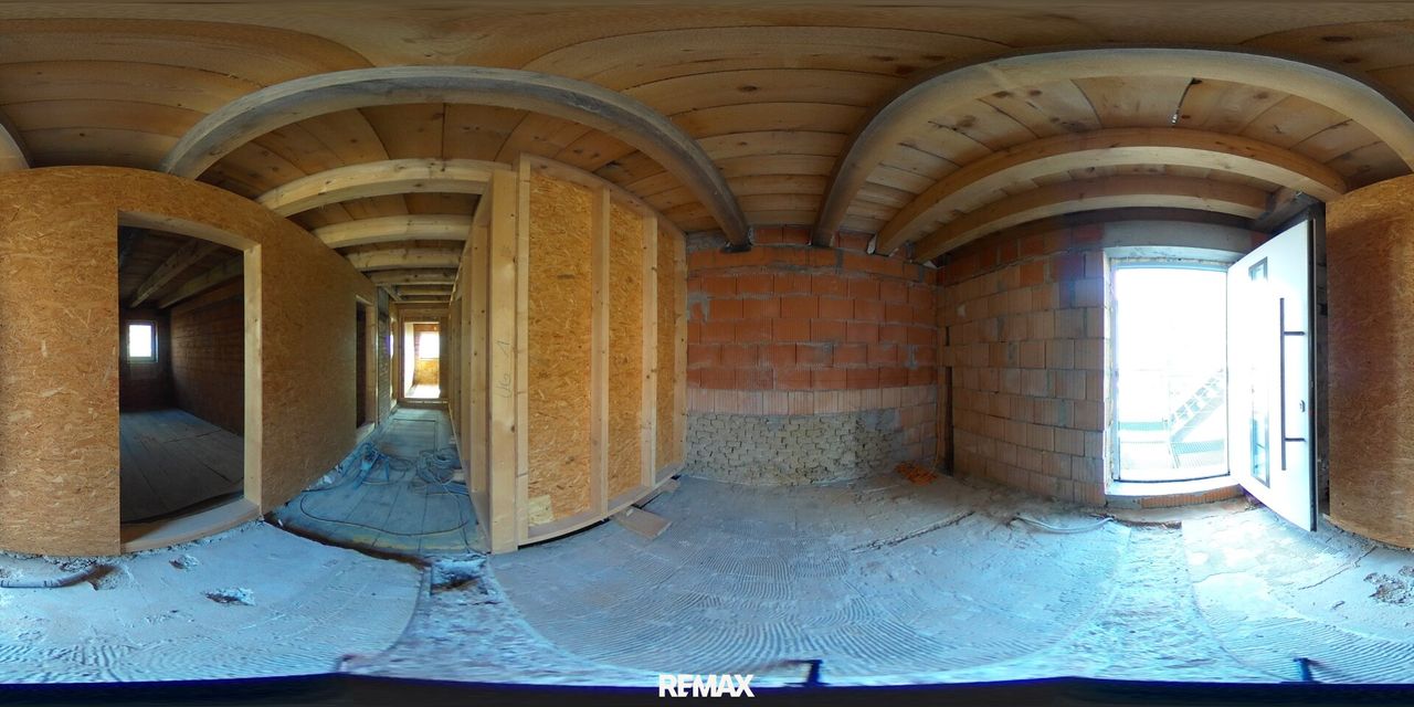 Küche, Wohnzimmer, 2 Schlafzimmer, WC, Bad und Vorraum. Dieser Stock befindet sich im Rohbaustadium.