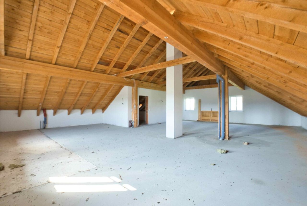 Das weitläufige Dachgeschoss eröffnet zusätzliche Möglichkeiten für Wohnen, Arbeiten oder Freizeit.