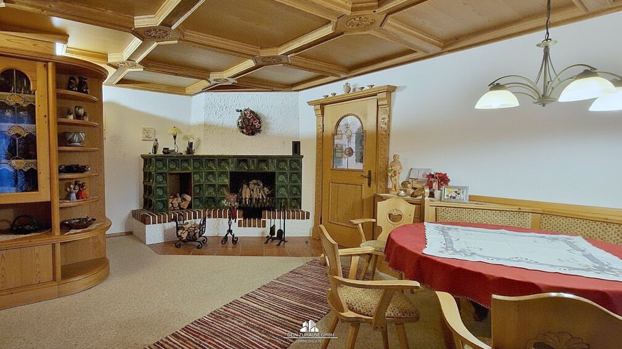 - Wohn- / Esszimmer mit Kaminofen und Ausgang auf Balkon