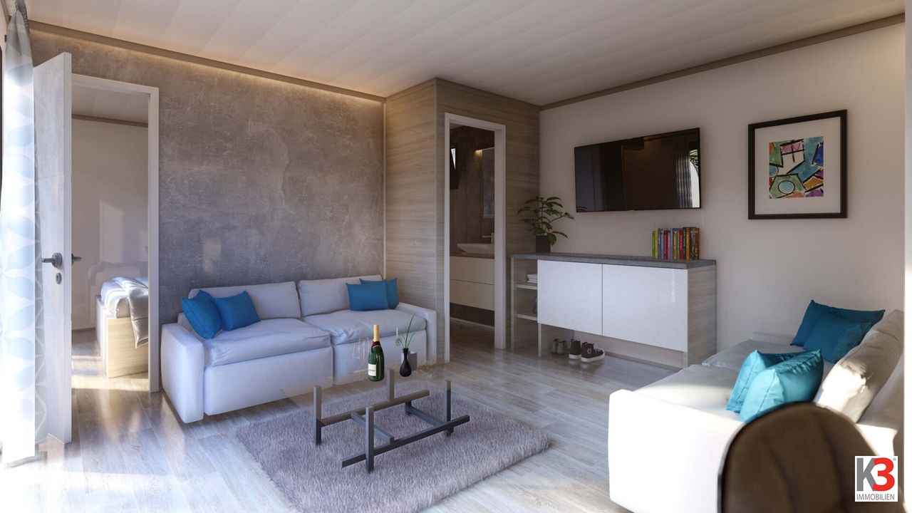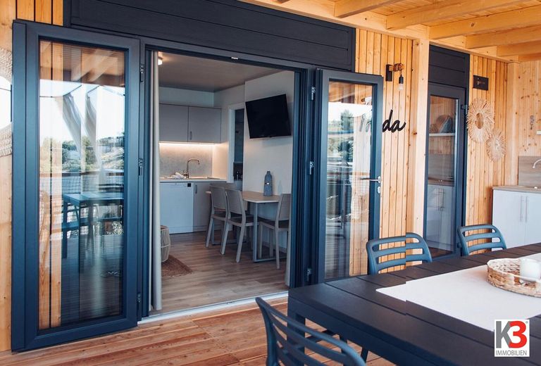 K3 - MOBILHEIM IN GEHOBENER BAUWEISE: Wohnfläche 41 m2, 2 Zimmer, große Terasse und Carport. Ferienregion Klopeinersee.