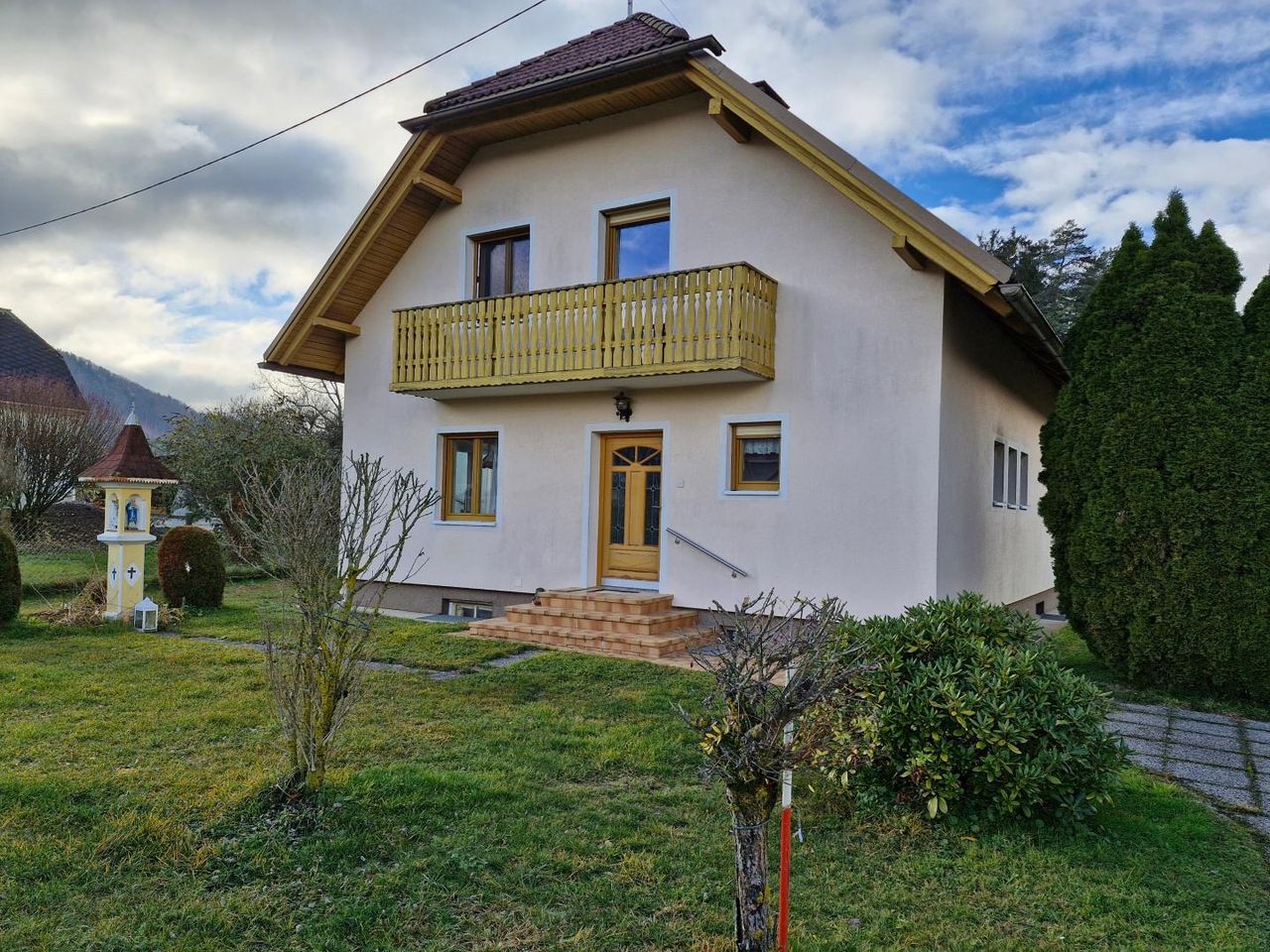 Ausgestattet mit riesigem Garten, Keller, 2 Geschossen, Balkon, Garage und großem Nebengebäude.