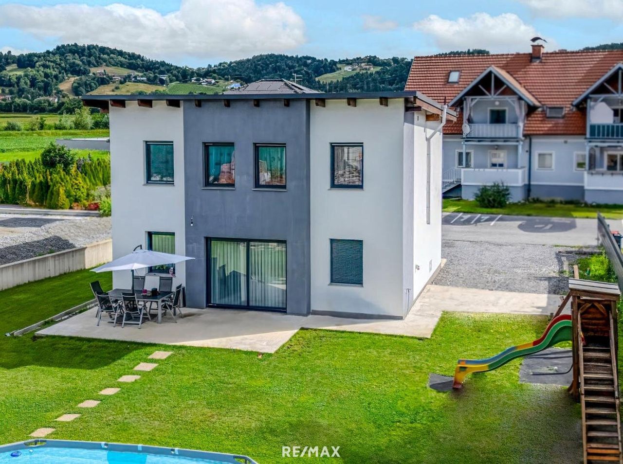 Neubau 2021 mit Pool – modernes Einfamilienhaus in Krottendorf-Gaisfeld 4 Zimmer · 118 m² Wohnfläche · 707 m² Grund · Preis € 419.000 Wohnen wie im Urlaub – dieses moderne Einfamilienhaus bietet hochwertige Ausstattung, klare Architektur und eine ruhige Lage im Grünen – nur wenige Minuten von Voitsberg und rund 20 Minuten von Graz entfernt. Virtuelle Besichtigung: 360°-Rundgang → https://360.remax.at/player/jy8px/de Video-Teaser → https://youtube.com/shorts/cjMdwxrHn2U Das Besondere Ihr privater Swimmingpool im sonnigen Garten – perfekt für Entspannung, Familie und Freunde. Zwei überdachte Stellplätze, energieeffiziente Bauweise (HWB 39,1 B / fGEE 0,68 A+) und sofortige Bezugsbereitschaft machen dieses Haus zu einem echten Highlight...