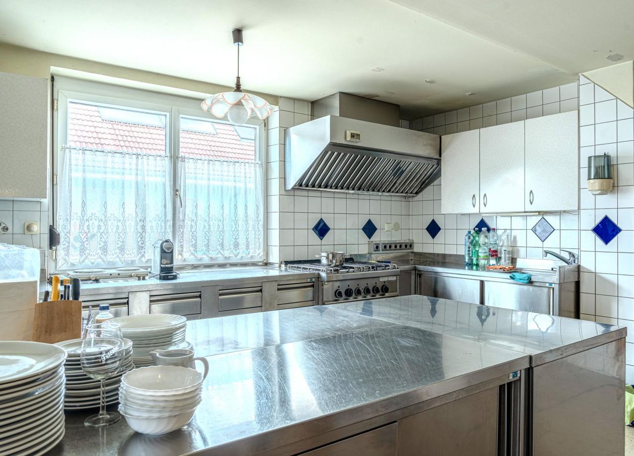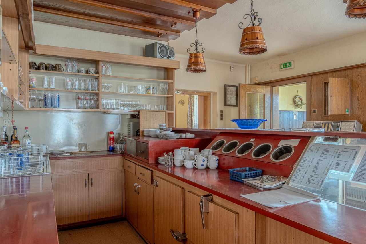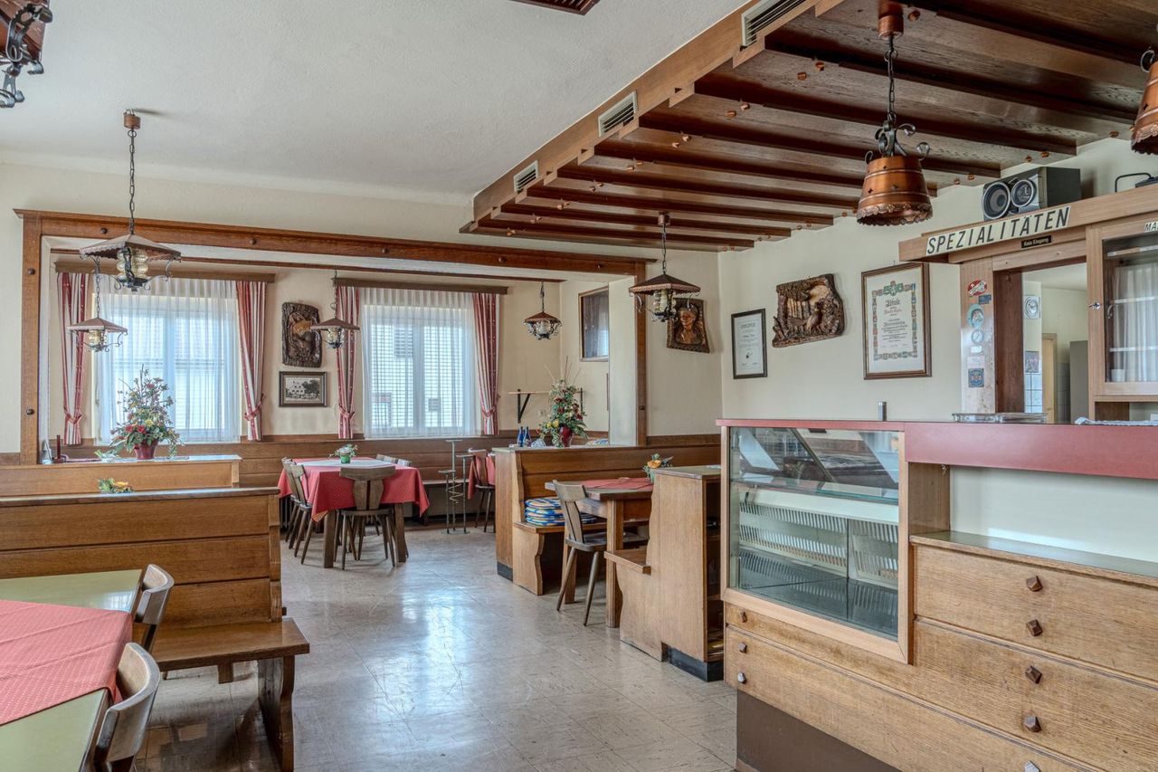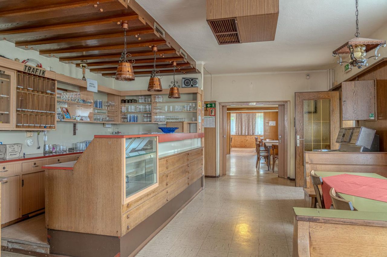 Im Erdgeschoss befindet sich ein vollständig eingerichtetes Gasthaus mit einladendem Gastbereich, Küche und sämtlichen Möbeln. Zur Inbetriebnahme fehlen lediglich ein paar wenige Upgrades. Hier eröffnen sich vielfältige Nutzungsmöglichkeiten: vom traditionellen Wirtshaus über Event- und Cateringbetrieb bis hin zu modernen Konzepten wie Café, Bistro oder Vereinslokal.