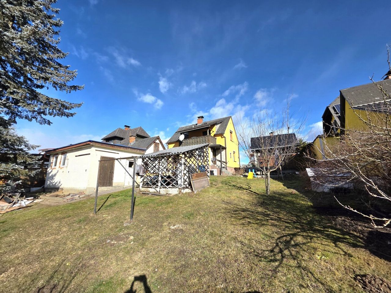 Der sonnige Garten lädt zum Entspannen und Genießen ein. Durch die leichte Hanglage wirkt das Grundstück besonders lebendig und offen. Ein kleiner Pavillon bietet einen gemütlichen Platz im Schatten, während einige Bäume für eine natürliche Atmosphäre sorgen.